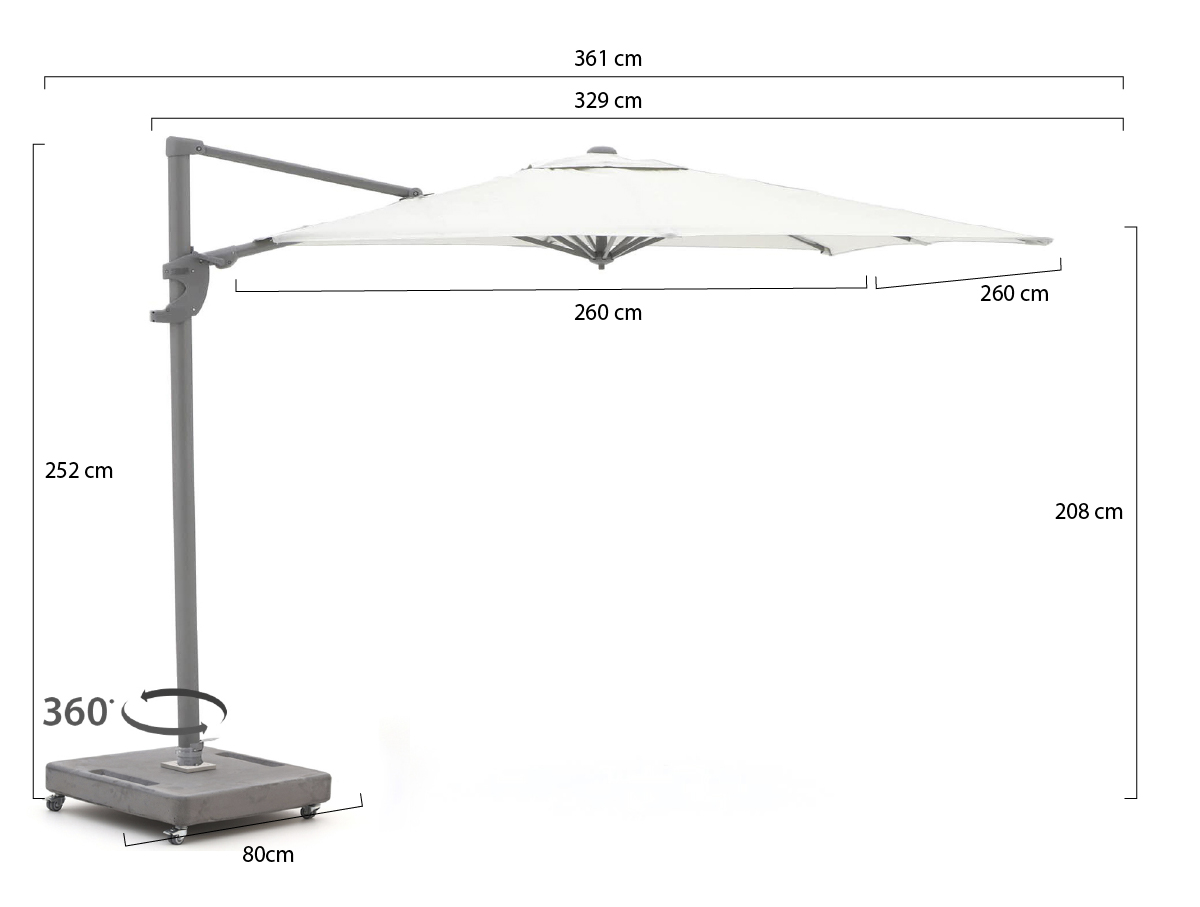 Inclusief beschermhoes: De bijpassende hoes beschermt je parasol tegen alle weersinvloeden, zodat de kleur langer mooi blijft en je er extra lang van kunt genieten.