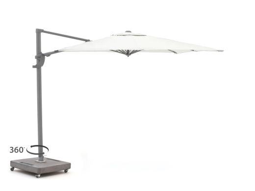 Je kunt de parasol 360 graden draaien, zo heb je altijd schaduw op de juiste plek