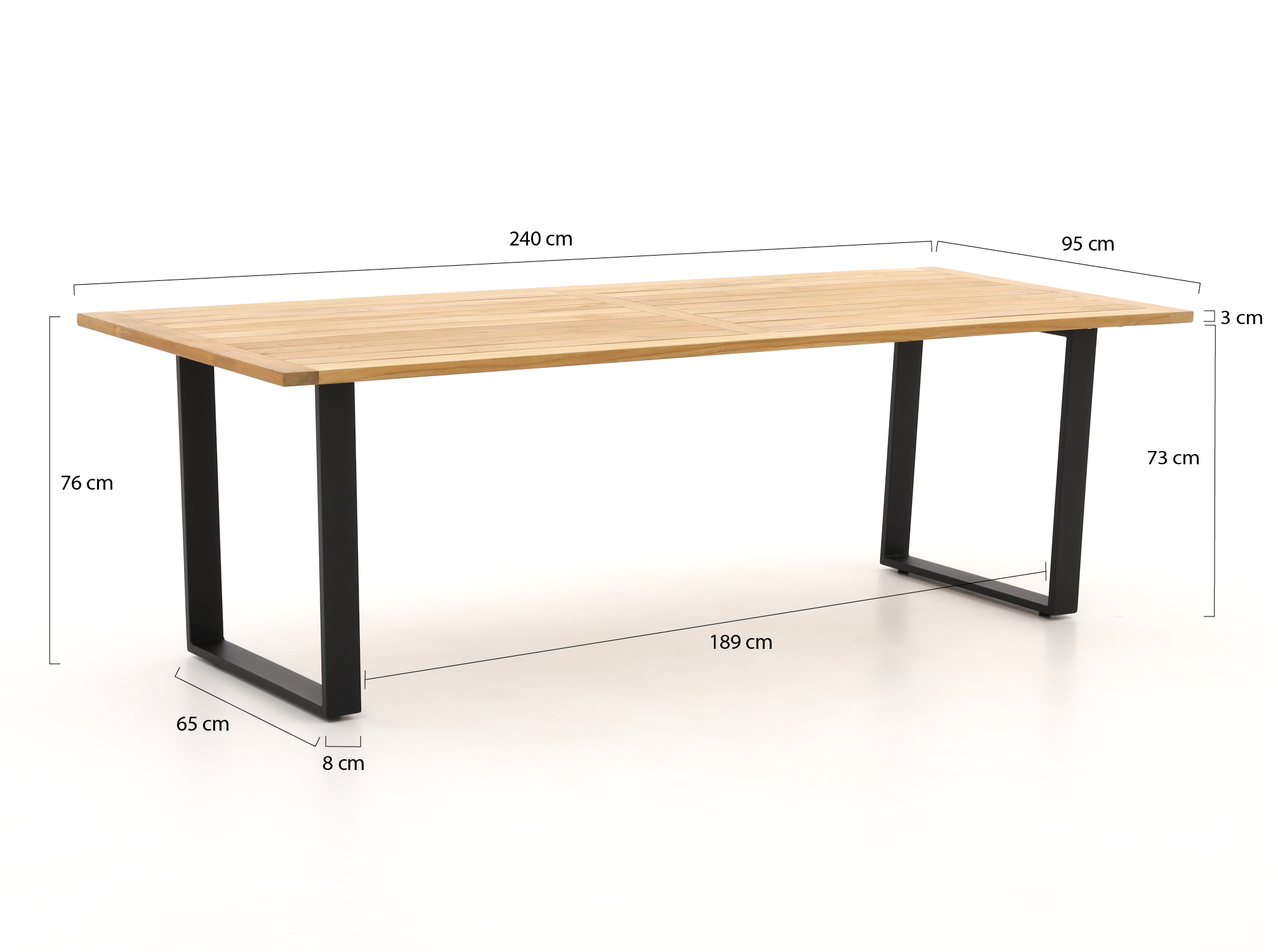 • Teakhouten tafelblad: Sterk natuurproduct dat tegen weer en wind kan en rustig vergrijst naar lichtgrijs in de loop van de tijd.
