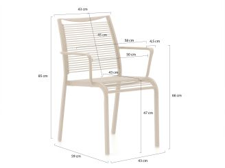 De Apple Bee Hawaii dining tuinstoel beige is een lichte, stapelbare tuinstoel voor wie graag vaak aan tafel zit, met meerdere stoelen rond de tuintafel. De zitting van kunststof en het aluminium frame zorgen ervoor dat je de stoelen makkelijk verplaatst en weinig omkijken hebt naar onderhoud, ideaal voor een terras dat je regelmatig anders indeelt. Dankzij het stapelbare design ruim je ze snel op als je extra ruimte nodig hebt, of de stoelen even uit het zicht wilt. Zoek je een degelijke, moderne eetstoel voor buiten waar je er makkelijk meerdere van kwijt kunt, dan zit je met deze Hawaii stoel goed.