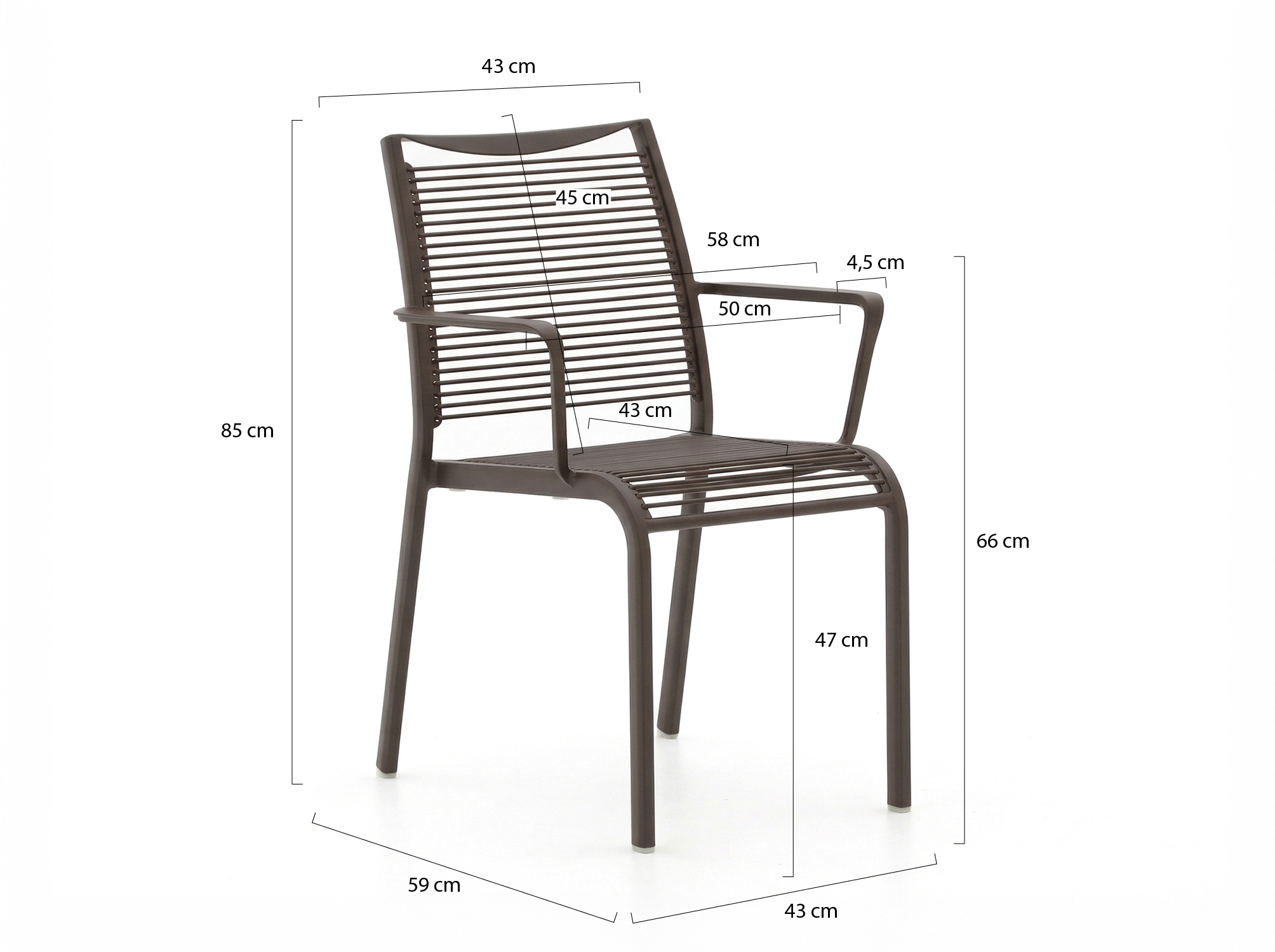 • Rope zitting van kunststof: de zitting droogt snel op en voelt prettig aan als je zit