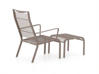 • Loungestoel met voetenbank: je zit laag en relaxed en legt je benen makkelijk omhoog