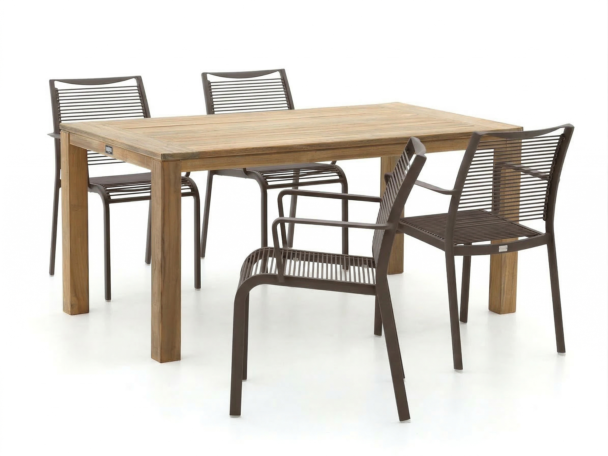 • Het teakhouten tafelblad is weerbestendig en vergrijst mooi