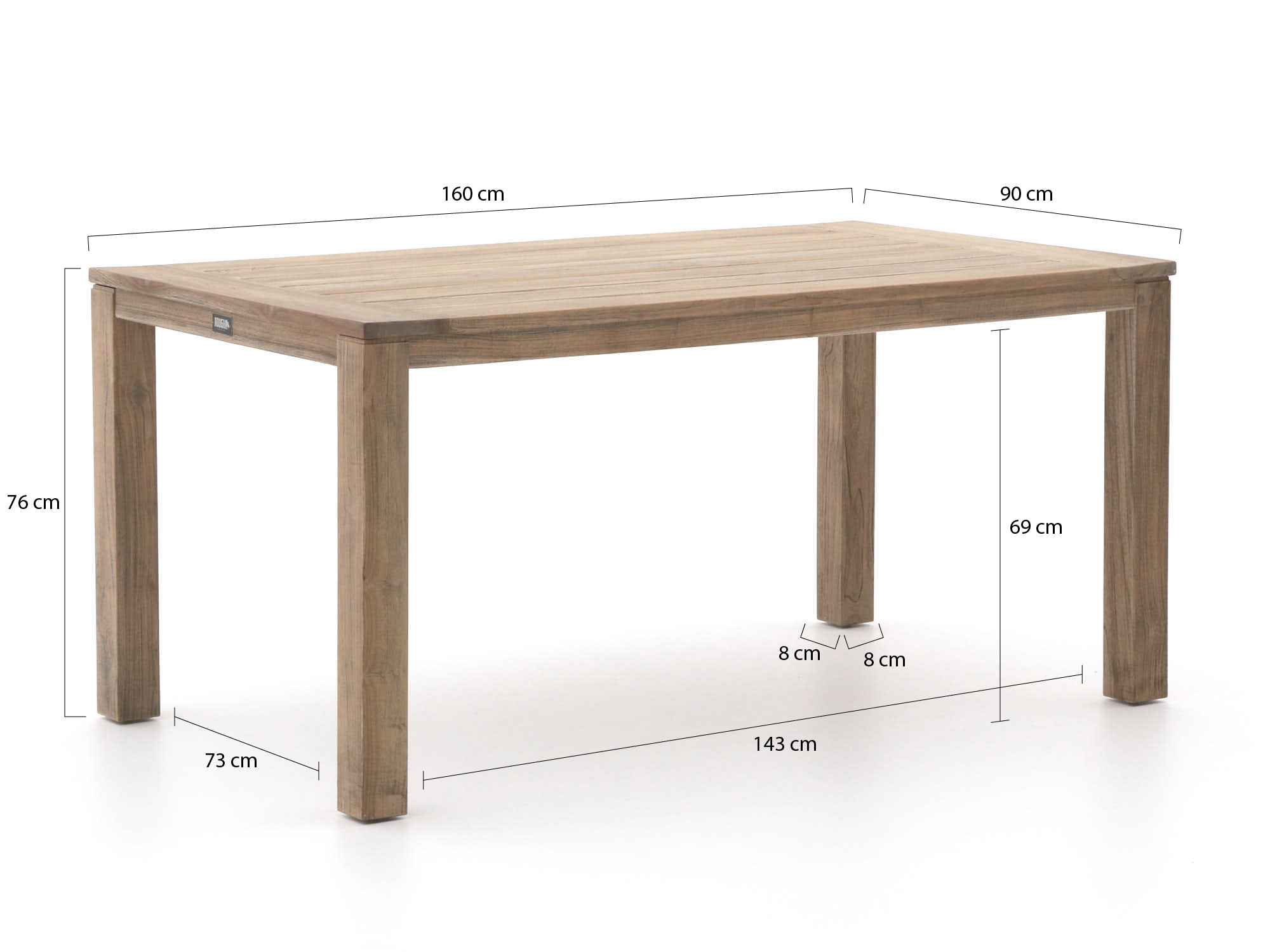 • Teakhouten tafelblad: Teakhout is een sterk natuurproduct dat tegen alle weersomstandigheden kan, dus je kunt de tafel gewoon buiten laten staan.