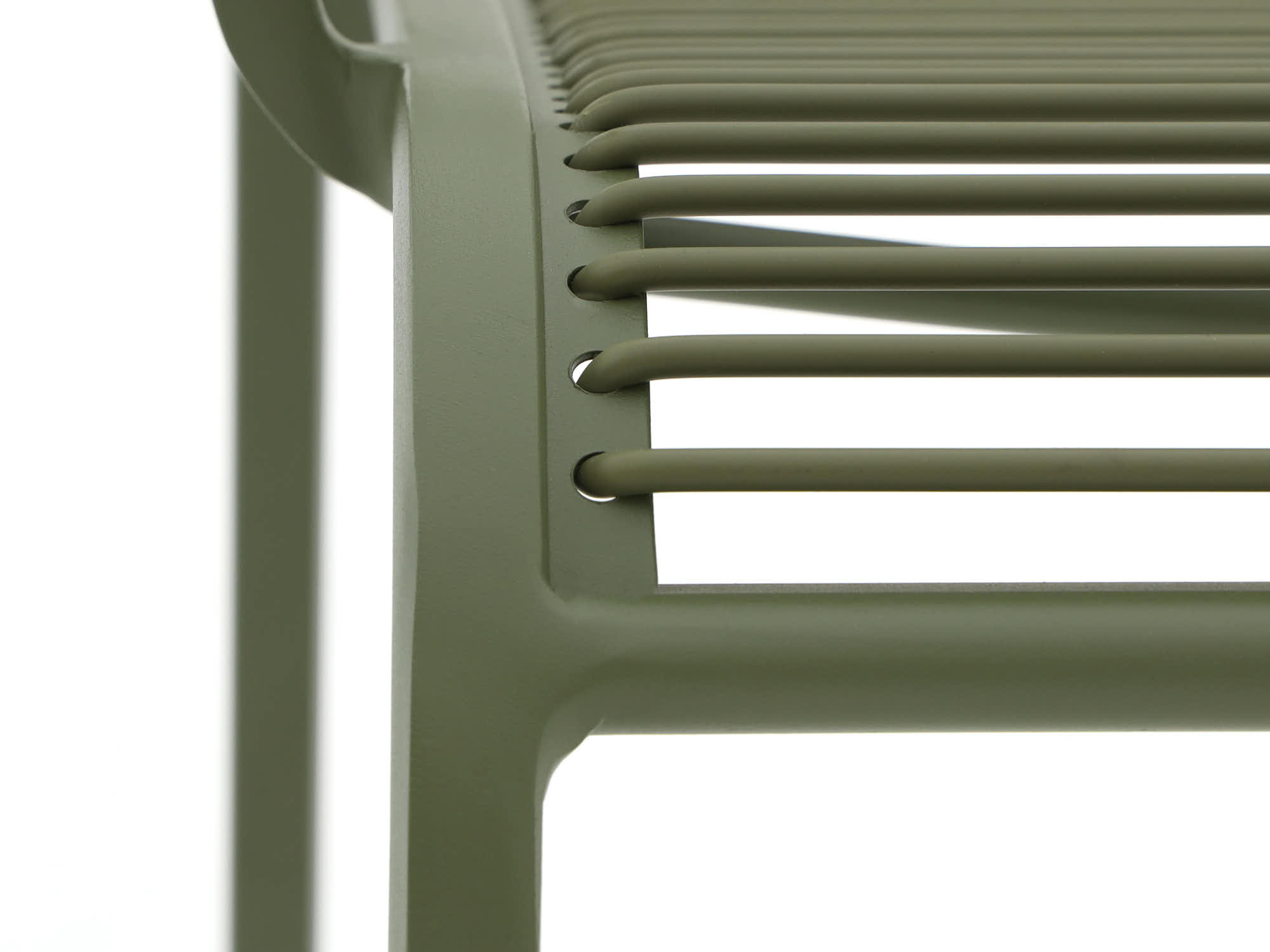 Kunststof draad zitting: De zitting is gemaakt van kunststof draad, dat niet alleen comfortabel zit, maar ook snel droogt na een regenbui. Zo kun je snel weer genieten van je tuin.