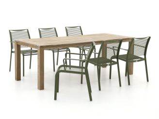 Met de Apple Bee Hawaii/ROUGH-S dining tuinset haal je een vleugje tropisch comfort naar je eigen achtertuin. Deze 7-delige set, uitgevoerd in een frisse olijfgroene kleur, biedt plaats aan zes personen en is ideaal voor lange zomeravonden vol gezelligheid. De stoelen zijn gemaakt van stevig kunststof draad en hebben een aluminium frame, waardoor ze niet alleen lichtgewicht maar ook stapelbaar zijn. Handig als je ze even wilt opbergen of ruimte wilt maken voor een spontaan tuinfeestje. Het teakhouten tafelblad voegt een natuurlijke charme toe en is bestand tegen alle weersomstandigheden, zodat je er jarenlang plezier van hebt. Kortom, een set die niet alleen praktisch is, maar ook een stijlvolle aanvulling op je buitenleven vormt.
