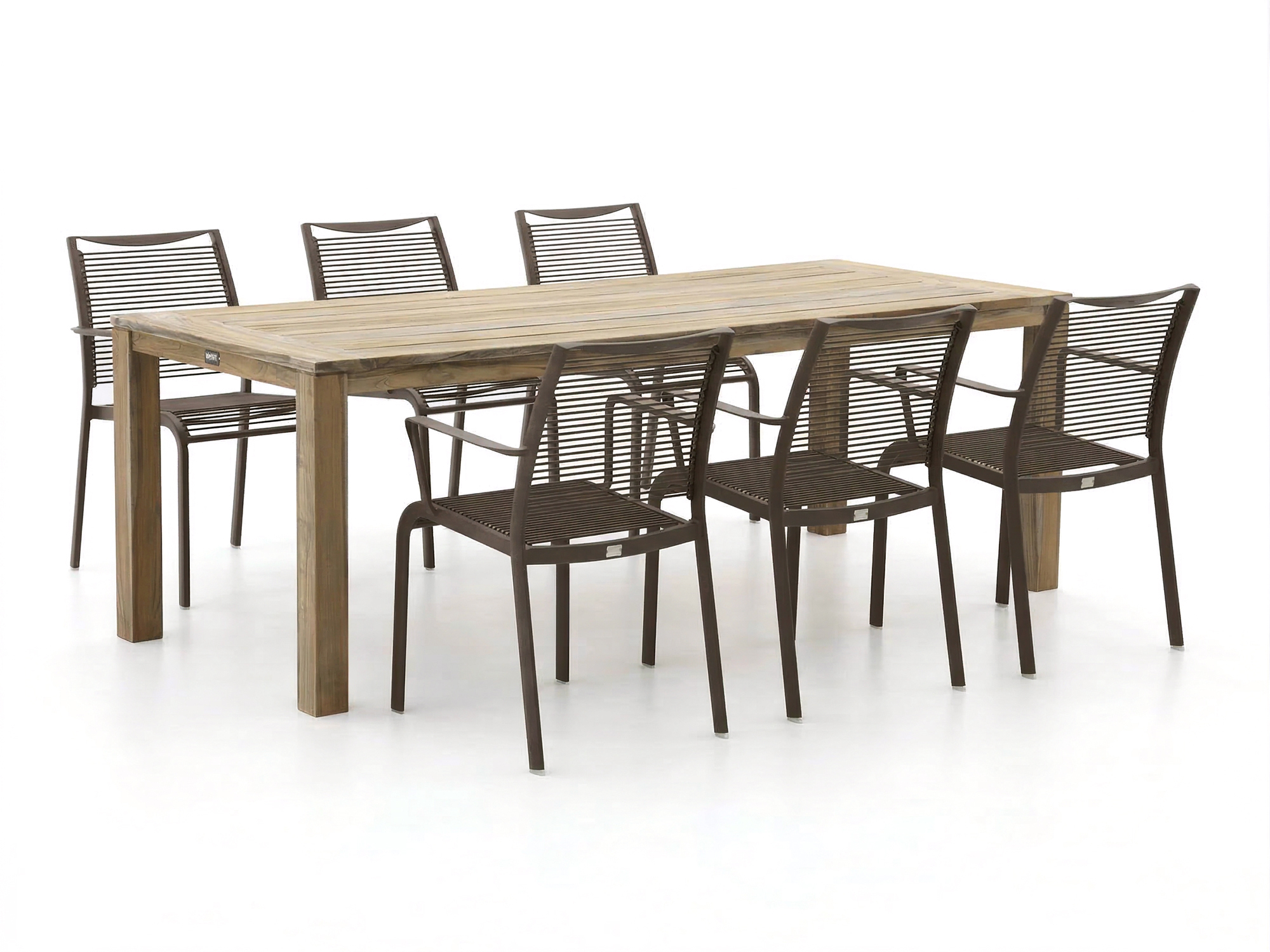 • Het teakhouten tafelblad is weerbestendig en krijgt een mooie vergrijzing