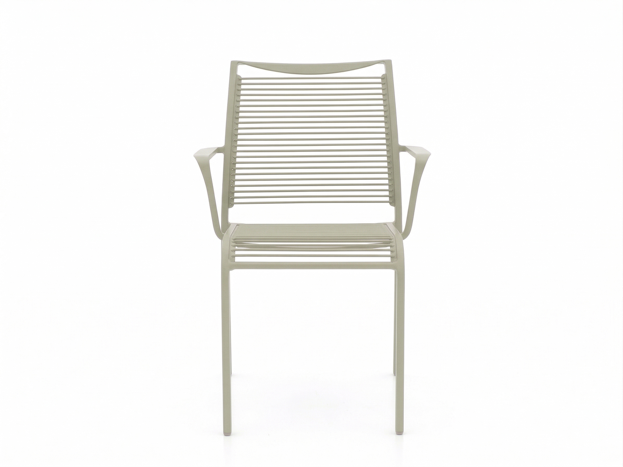 • Kunststof draadstoel: De pistachekleurige kunststof draden vormen zich licht om je lichaam en zijn makkelijk schoon te maken na een lange zomeravond.