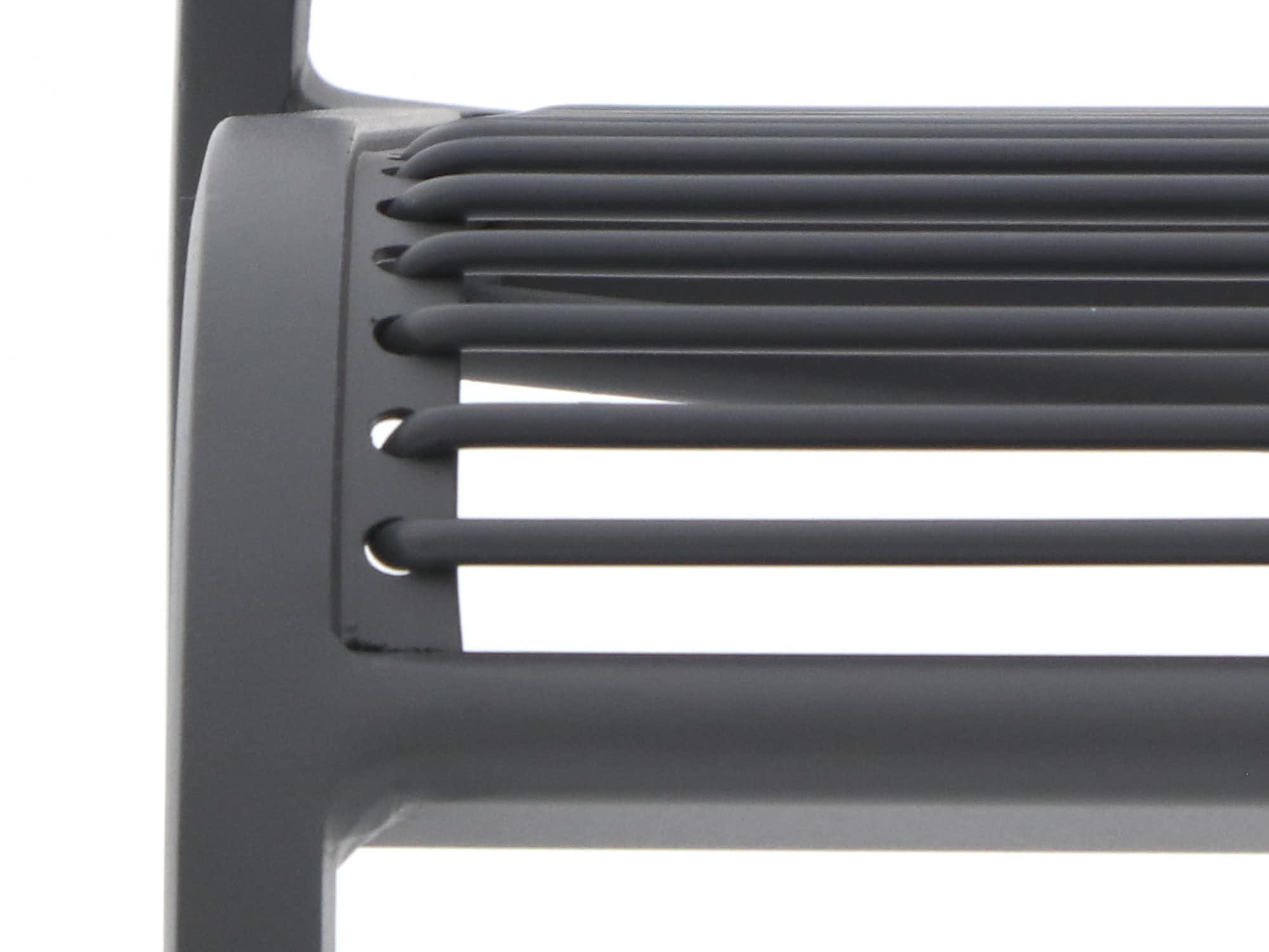 Kunststof zitting: De zitting is UV-bestendig en makkelijk te reinigen, perfect voor buitengebruik zonder zorgen over verkleuring of vlekken.
