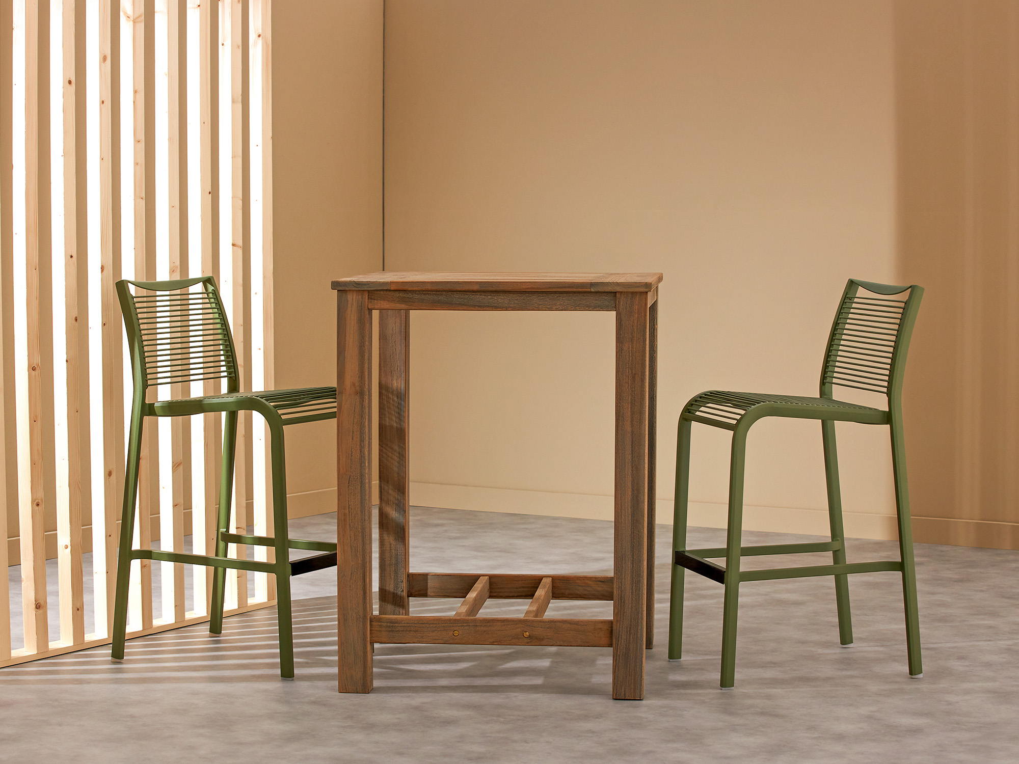Breng een vleugje tropische flair naar je tuin met de Apple Bee Hawaii/ROUGH-X barset! Deze stijlvolle set combineert de natuurlijke charme van teakhout met de moderne look van olijfgroene kunststof zittingen. Het teakhouten tafelblad is bestand tegen alle weersomstandigheden, waardoor je jarenlang plezier hebt van deze set. Het aluminium frame van de stoelen is onderhoudsarm en kan niet doorroesten, ideaal voor buitengebruik. Geniet van gezellige avonden met vrienden en familie aan deze uitnodigende barset. En als je klaar bent met borrelen, schuif je de krukken eenvoudig onder de tafel. Dat scheelt weer ruimte in je tuin!