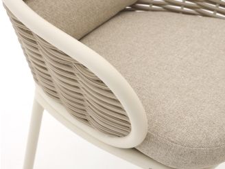 De Apple Bee Pine Key dining tuinstoel wit is een tuinstoel voor wie graag lang aan tafel zit, met net wat extra zachtheid door de meegeleverde beige kussens. Dankzij het wicker zit je stevig met goede ondersteuning, terwijl de rugleuning fijn rechtop staat voor comfortabel tafelen. Het wicker is licht van gewicht en vochtbestendig, waardoor je deze stoel makkelijk verplaatst en hij jarenlang mooi blijft op je terras. De dikke kussens maken de zitting zachter, zodat je ook tijdens lange etentjes ontspannen blijft zitten.