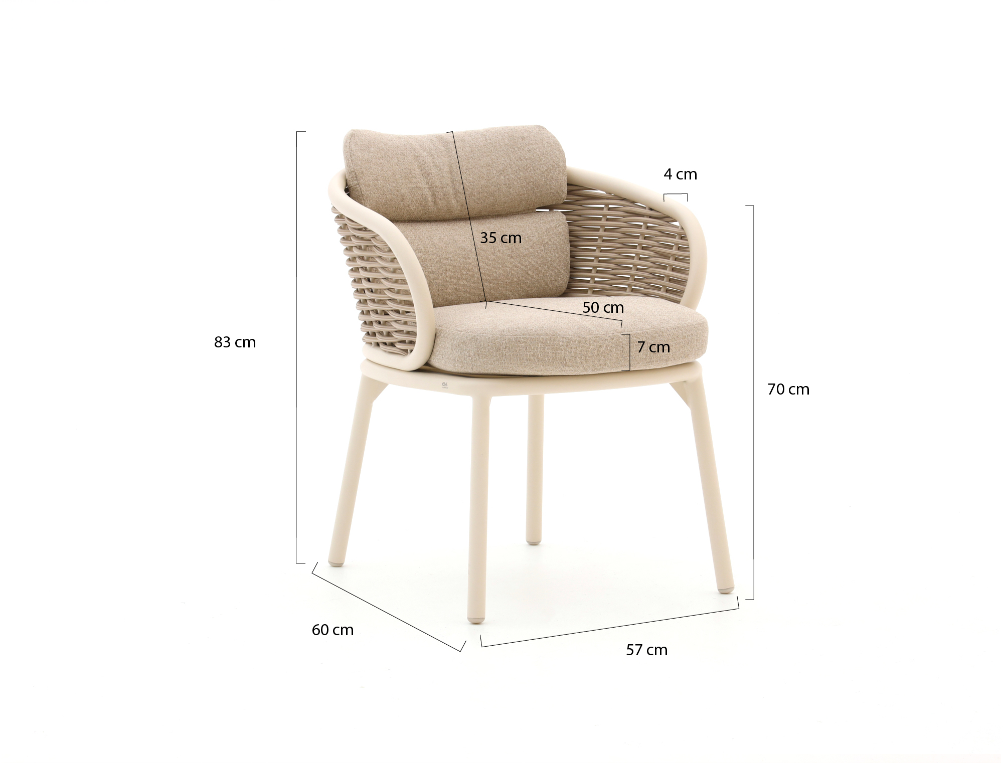 De Apple Bee Pine Key/Zanzibar dining tuinset is een royale 6 persoons tuinset voor wie graag lang buiten tafelt en een stevige, degelijke set zoekt. De Deens ovale tafel van 220 cm geeft je net wat meer ruimte dan een standaard tafel en oogt toch wat zachter door de ronde vormen. Het aluminium frame maakt de set lekker licht, waardoor je hem makkelijker verschuift als je terras anders mag ingedeeld worden. Het sintered stone tafelblad is sterk en krasvast, ideaal als je vaak met pannen, schalen of spelletjes aan tafel zit zonder je steeds zorgen te hoeven maken.