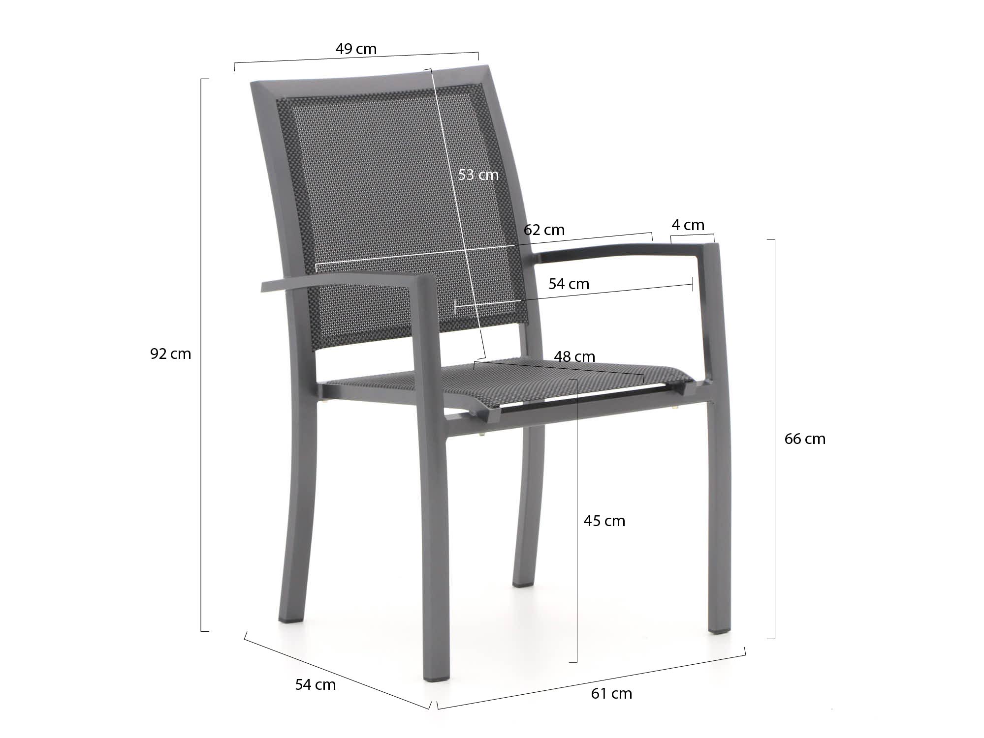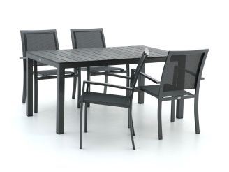 Met de Bellagio Anzio/Fidenza 160cm dining tuinset haal je een stukje elegantie in je tuin. Deze 5-delige set in de stijlvolle kleur Royal Grey biedt niet alleen een plek om te eten, maar ook om te genieten van lange zomeravonden met vrienden en familie. De combinatie van een strak aluminium frame en comfortabele textileen zittingen zorgt ervoor dat je urenlang kunt tafelen zonder in te boeten op comfort. En als de avond ten einde komt, stapel je de stoelen eenvoudig op – praktisch en ruimtebesparend. Het polywood tafelblad geeft de set een natuurlijke uitstraling, zonder het onderhoud dat echt hout vereist. Kortom, een set die je buitenleven net dat beetje extra geeft.