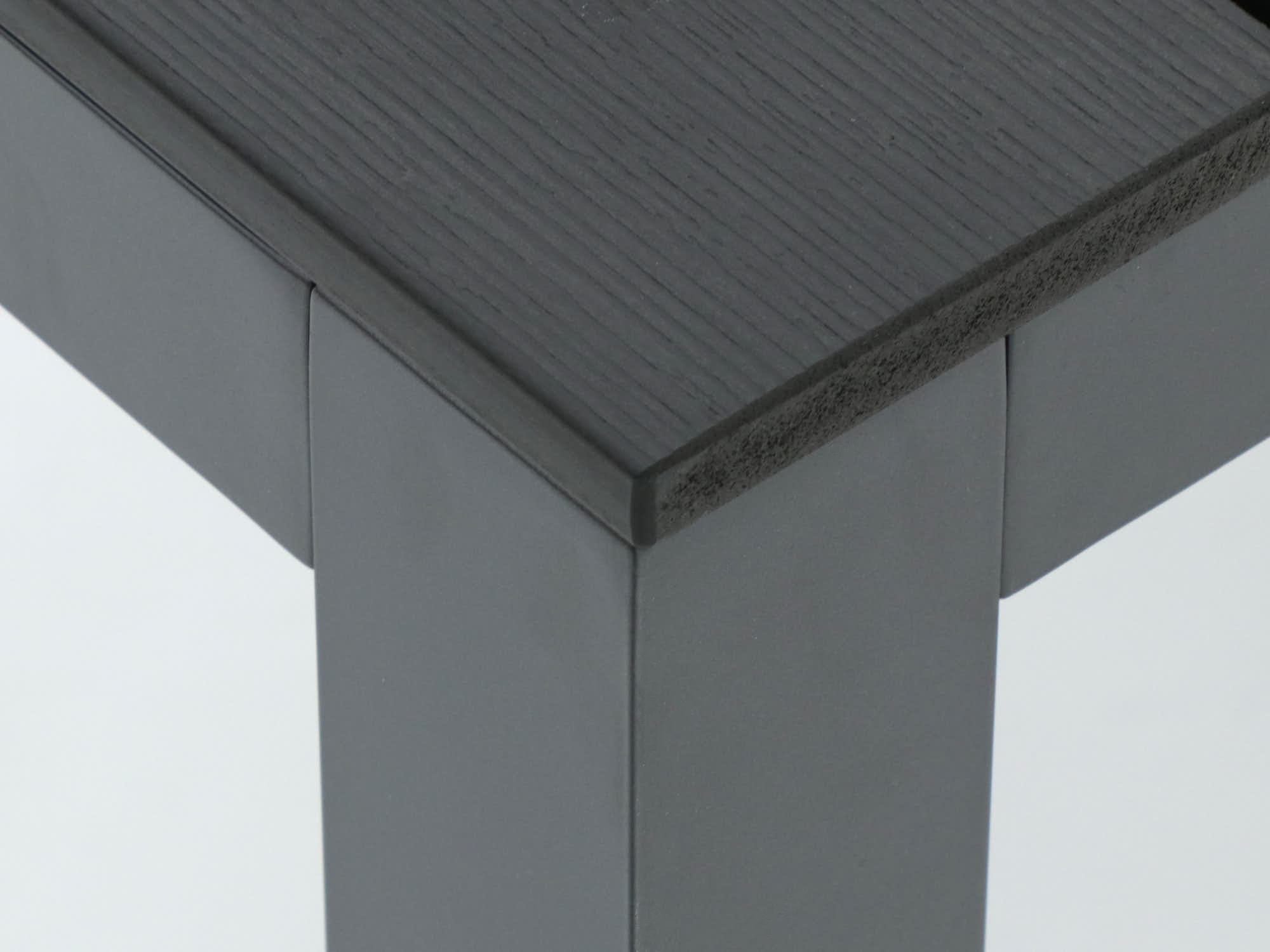 Polywood tafelblad: Ziet eruit als hout, maar is gemaakt van kunststof. Dat betekent geen gedoe met onderhoud en het blijft mooi, zelfs na een regenbui.