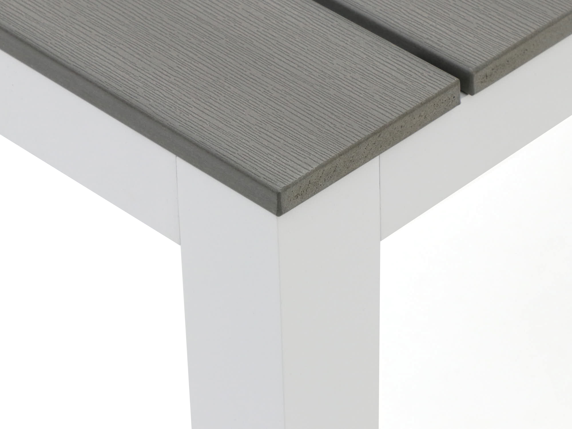 Polywood tafelblad: Ziet eruit als hout, maar is gemaakt van kunststof. Water- en vuilafstotend, dus geen gedoe met vlekken of kromtrekken.