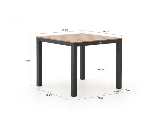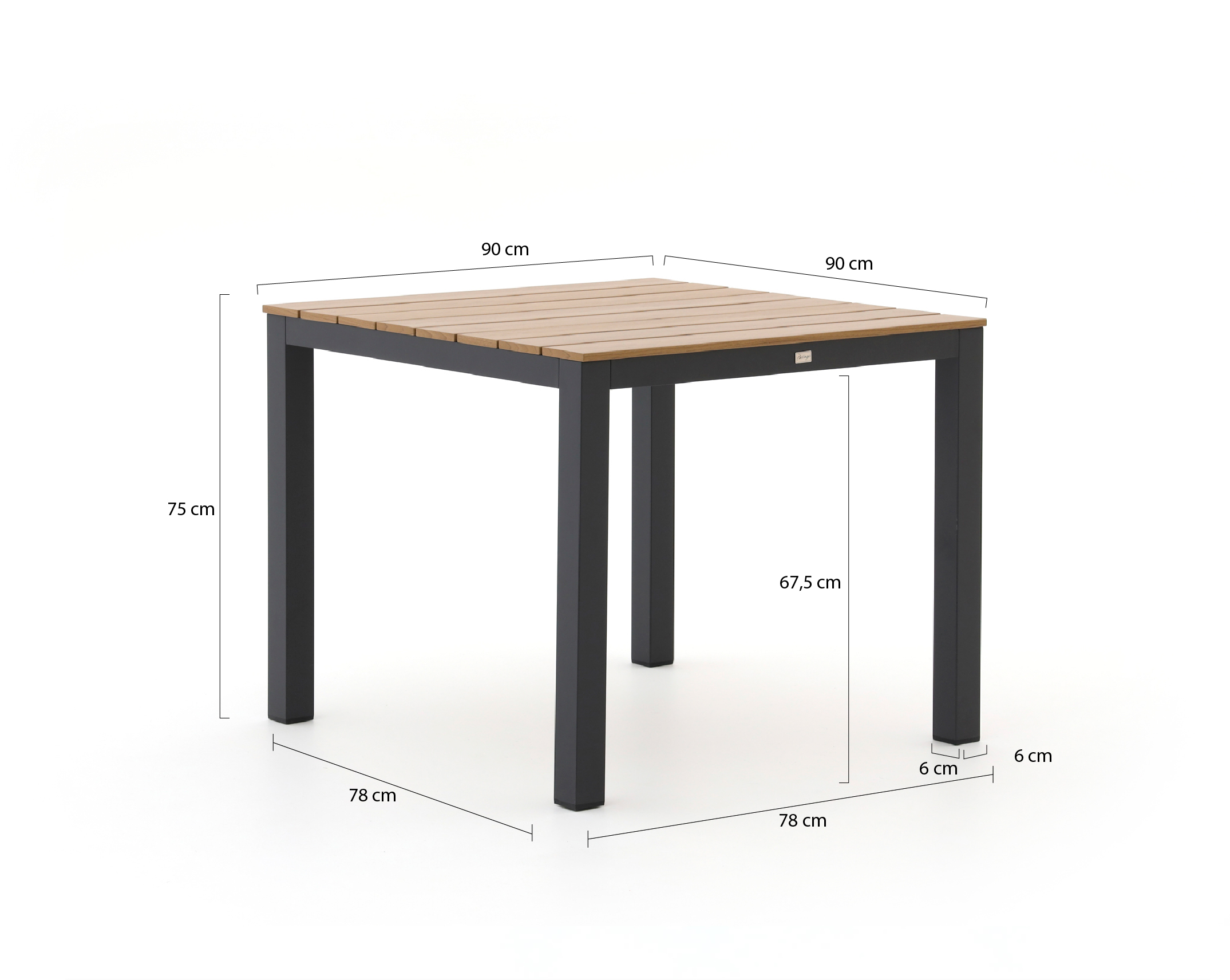 • Vierkante tafel van 90 cm: Compact van formaat, maar groot genoeg voor borden, schalen en drinken zonder geprop.