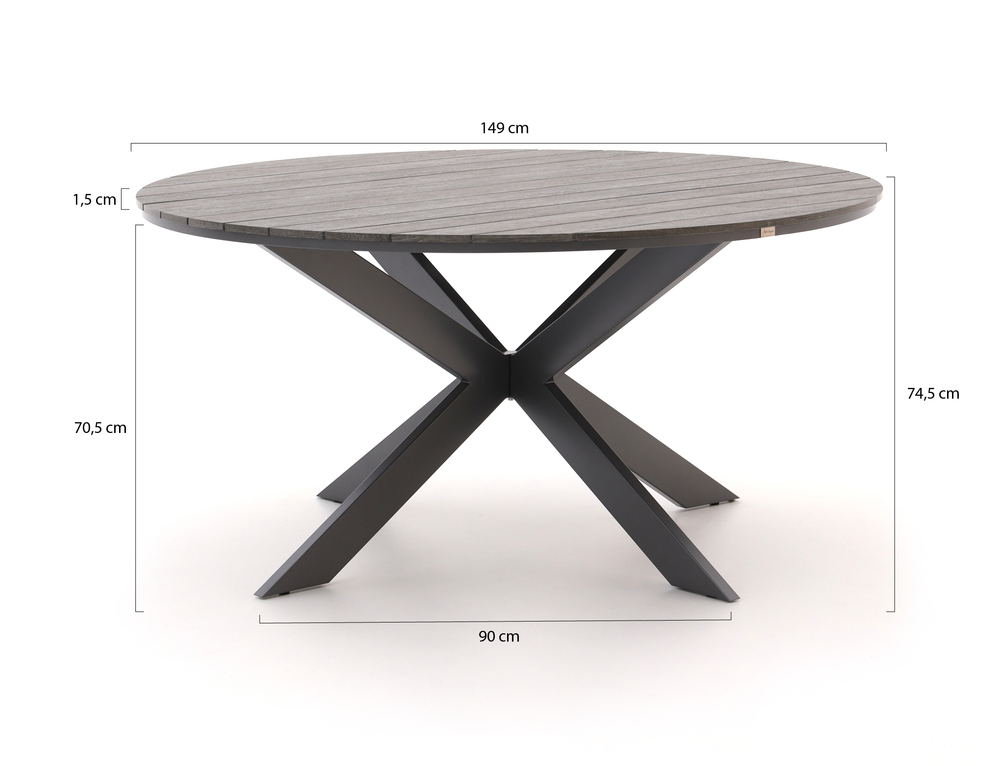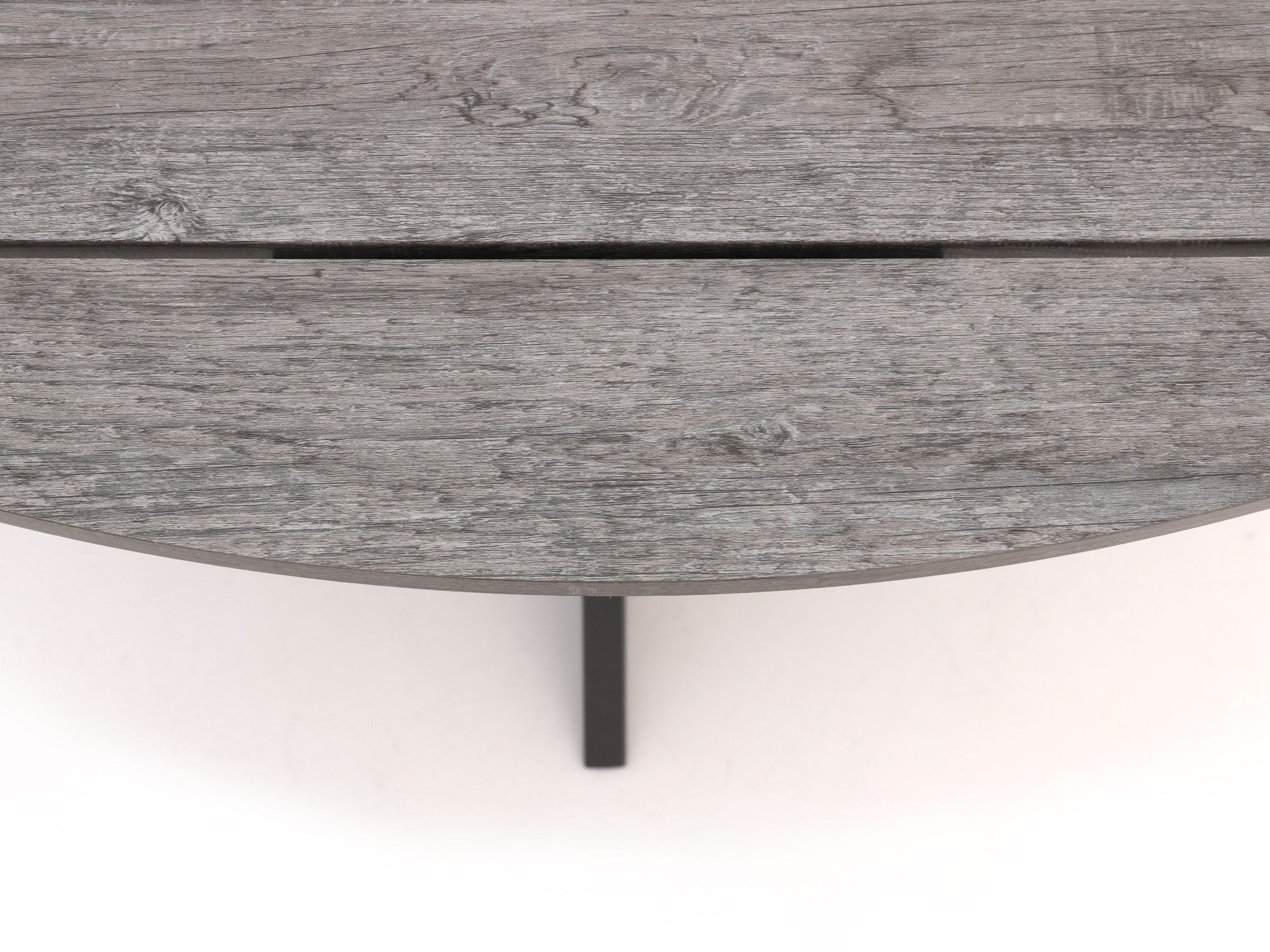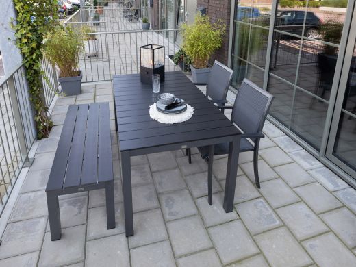 Polywood tafelblad: Het tafelblad heeft een houtlook, maar is eigenlijk van kunststof. Dat betekent dat het water- en vuilafstotend is, ideaal voor buitengebruik.
