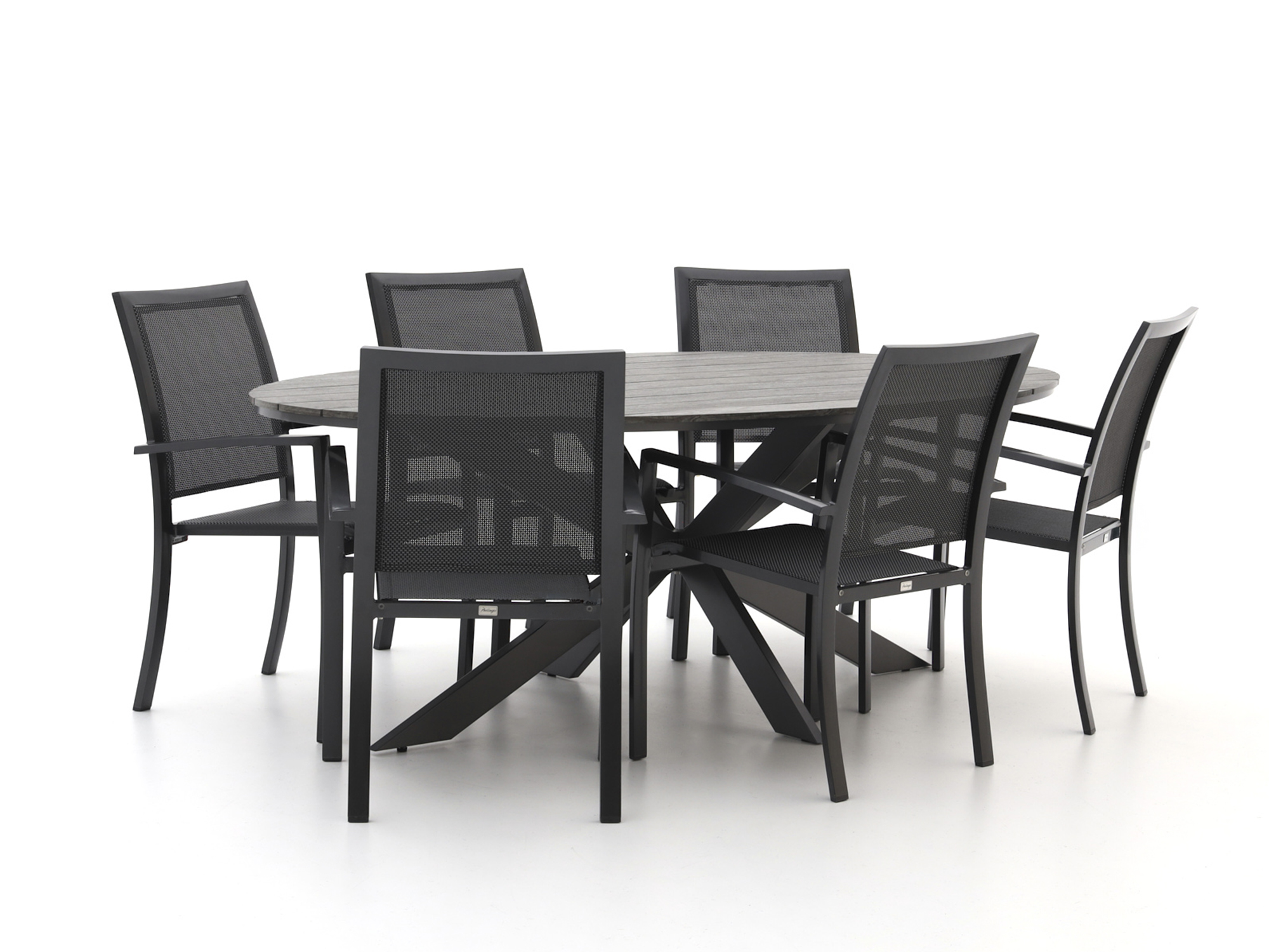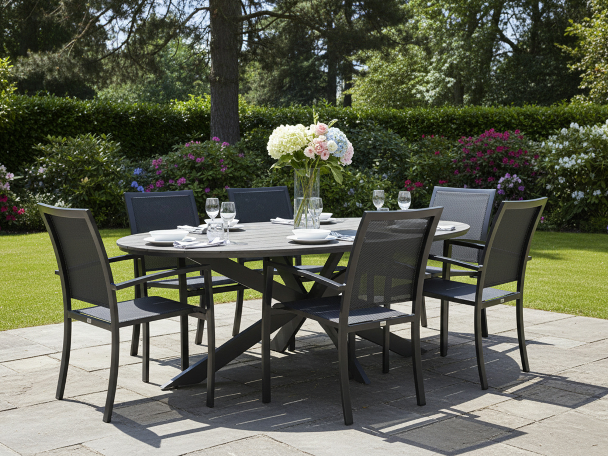 Als je een tuinset zoekt die zowel praktisch als stijlvol is, dan is deze Bellagio Anzio/Fidenza set een goede keuze. Met plek voor zes personen en een ovale tafel van 220 cm, is er genoeg ruimte voor een gezellige maaltijd in de buitenlucht. De stoelen zijn stapelbaar, wat handig is als je ze wilt opbergen. De combinatie van aluminium en polywood zorgt ervoor dat de set weerbestendig en onderhoudsarm is. En laten we eerlijk zijn, die grijs-antraciete kleur past gewoon overal bij.