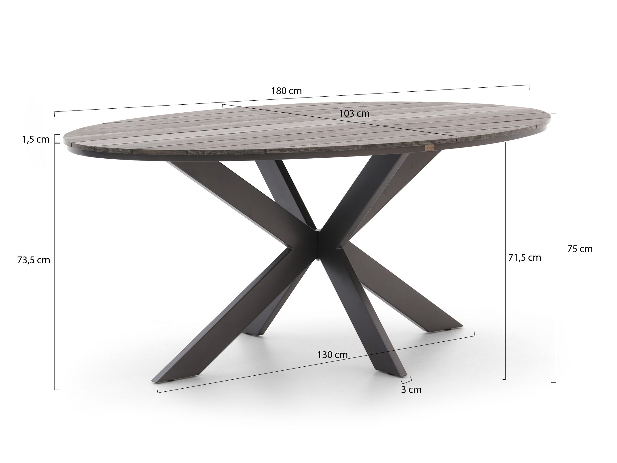 Ovale tafel: De ovale vorm zorgt ervoor dat iedereen makkelijk bij de hapjes kan zonder scherpe hoeken.