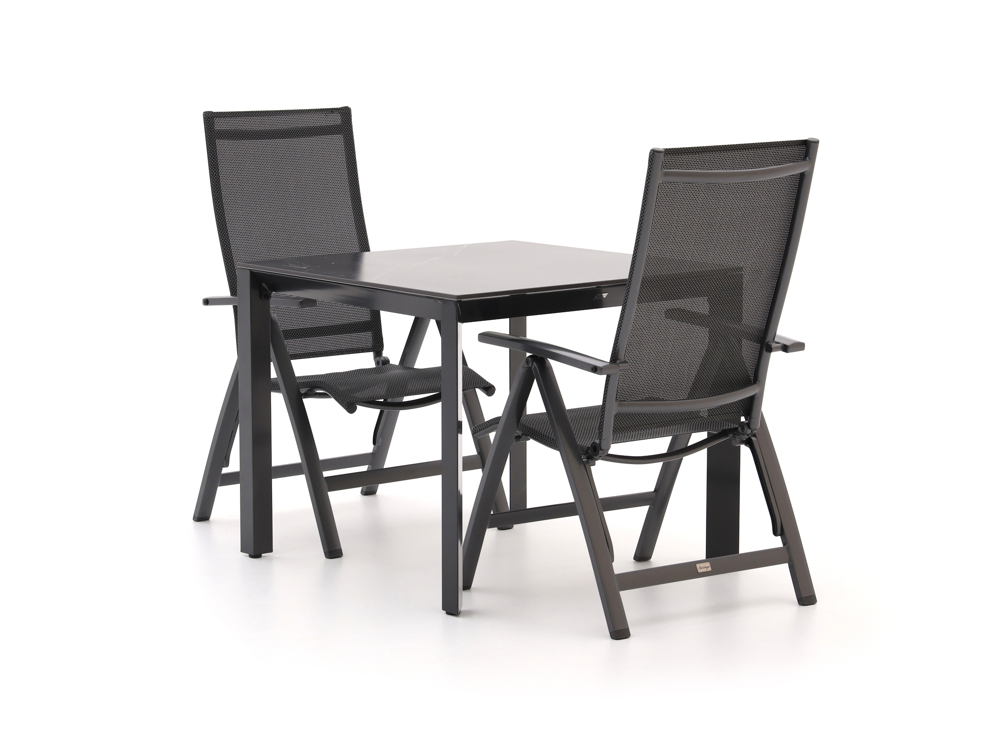 Ontdek de charme van de Bellagio Avenza/Sestino dining tuinset, een stijlvolle en praktische toevoeging aan je tuin. Deze 3-delige set is ontworpen voor ultiem comfort en flexibiliteit, met verstelbare stoelen die zich perfect naar jouw zithouding aanpassen. Het tafelblad van sintered stone in de kleur Shakespear Black geeft een moderne uitstraling en is bovendien onderhoudsarm. Het aluminium frame is licht en roest niet, ideaal voor buitengebruik. Met deze set geniet je van lange, ontspannen avonden in de tuin, zonder zorgen over onderhoud.