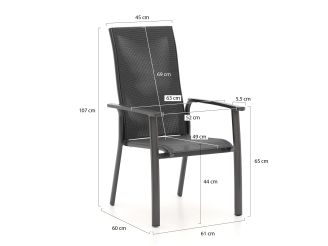 De Bellagio Avio/Fidenza dining tuinset is een stijlvolle en praktische aanvulling voor je tuin of terras. Met zijn ruime grijze kleur en antraciet polywood tafelblad, voegt deze set een moderne en strakke uitstraling toe aan je buitenruimte. De stoelen zijn stapelbaar, wat betekent dat je ze gemakkelijk kunt opbergen wanneer je ze niet gebruikt – handig als je ruimte wilt besparen. Het aluminium frame van zowel de tafel als de stoelen zorgt ervoor dat je je geen zorgen hoeft te maken over roest, en het textileen van de zittingen vormt zich comfortabel naar je lichaam. Ideaal voor lange zomeravonden met vrienden of familie, zonder dat je je zorgen hoeft te maken over onderhoud of duurzaamheid.