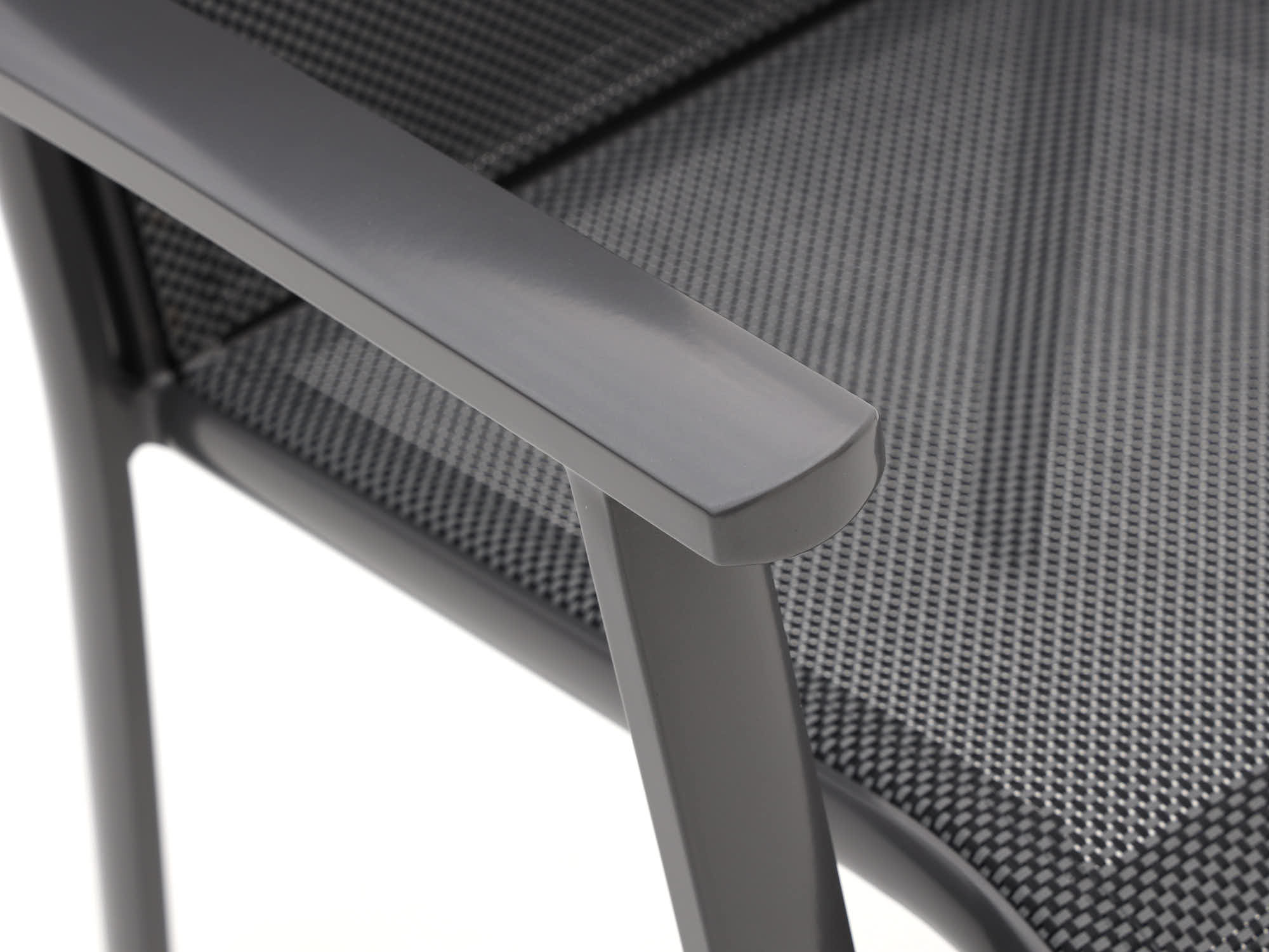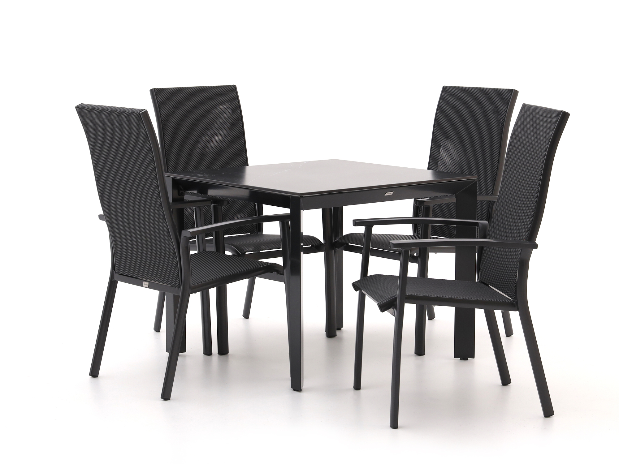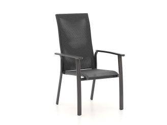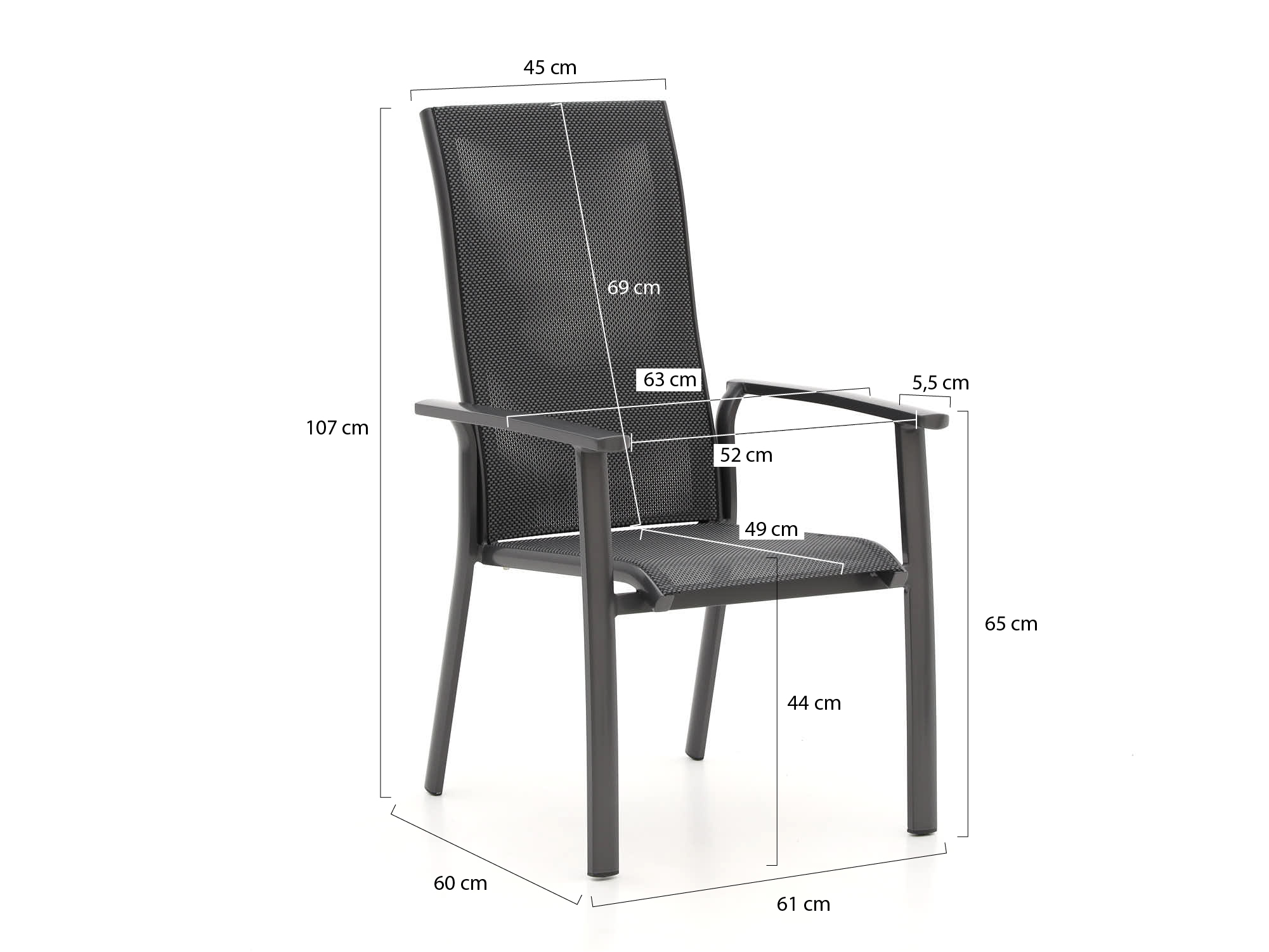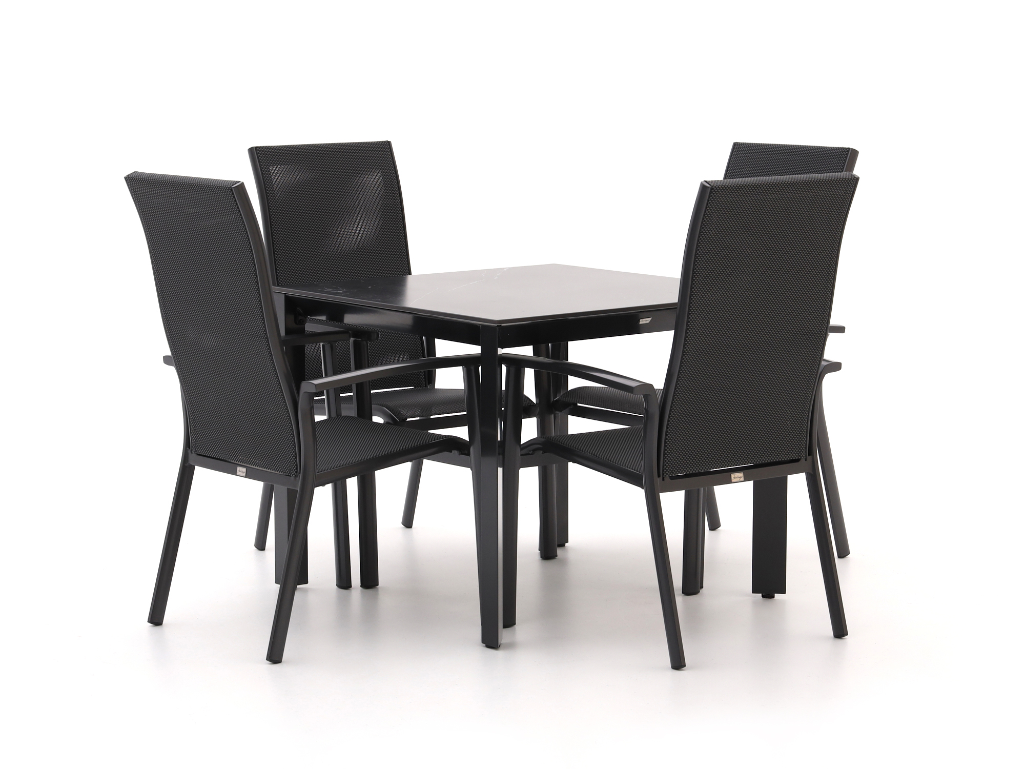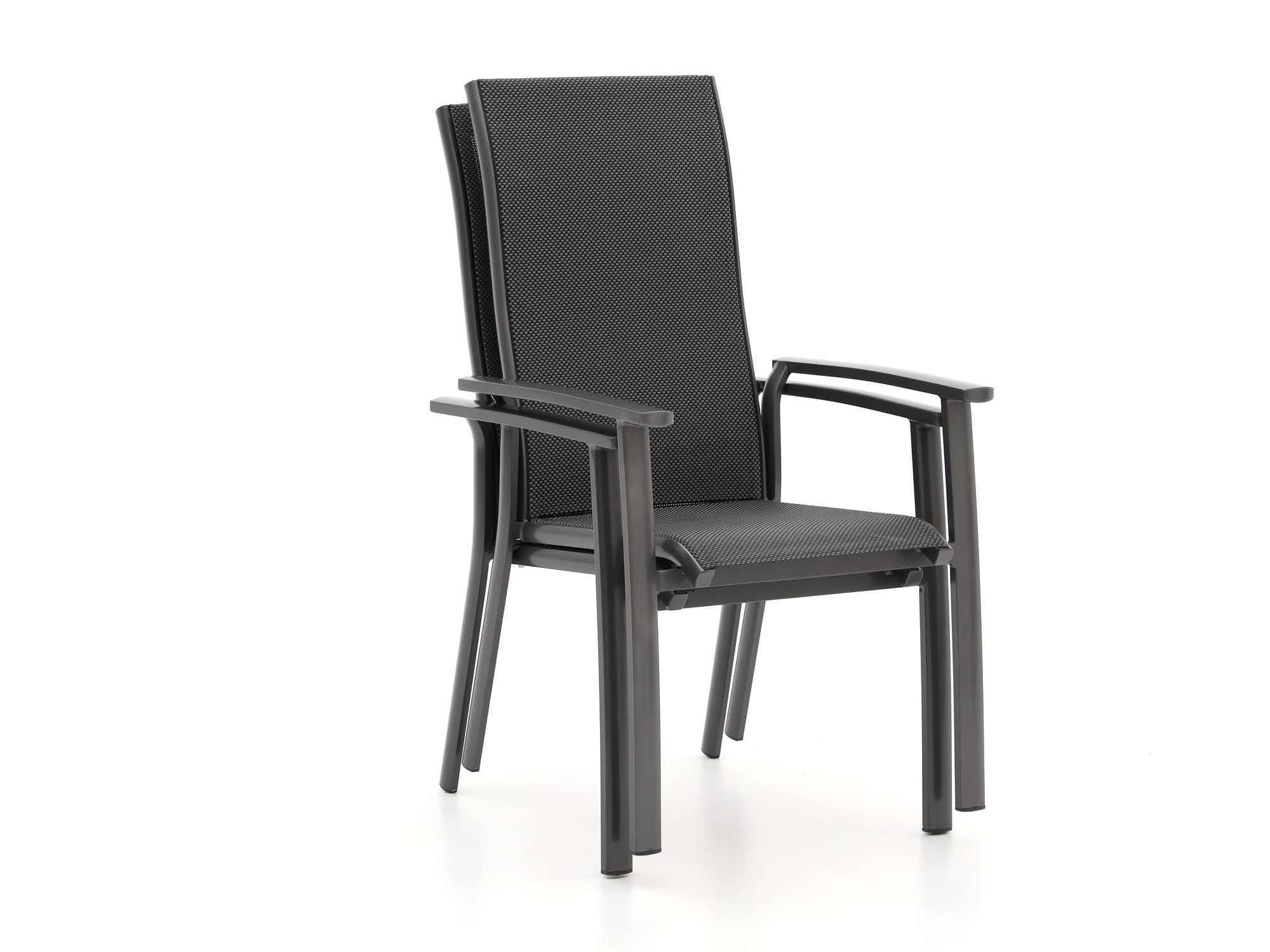 De Bellagio Avio/Sestino dining tuinset is een stijlvolle en praktische keuze voor je tuin. Met zijn elegante Royal Grey kleur en het Sintered Stone Shakespear Black tafelblad, straalt deze set een moderne en verfijnde uitstraling uit. Het aluminium frame is niet alleen onderhoudsarm, maar ook licht van gewicht, waardoor je de set eenvoudig kunt verplaatsen. De textileen zittingen vormen zich naar je lichaam, wat zorgt voor een heerlijk zitcomfort, zelfs als je langer aan tafel zit. Geniet van een gezellige maaltijd in de buitenlucht met deze veelzijdige en comfortabele tuinset. En als je klaar bent, stapel je de stoelen eenvoudig op om ruimte te besparen. Perfect voor een ontspannen middag in de zon!