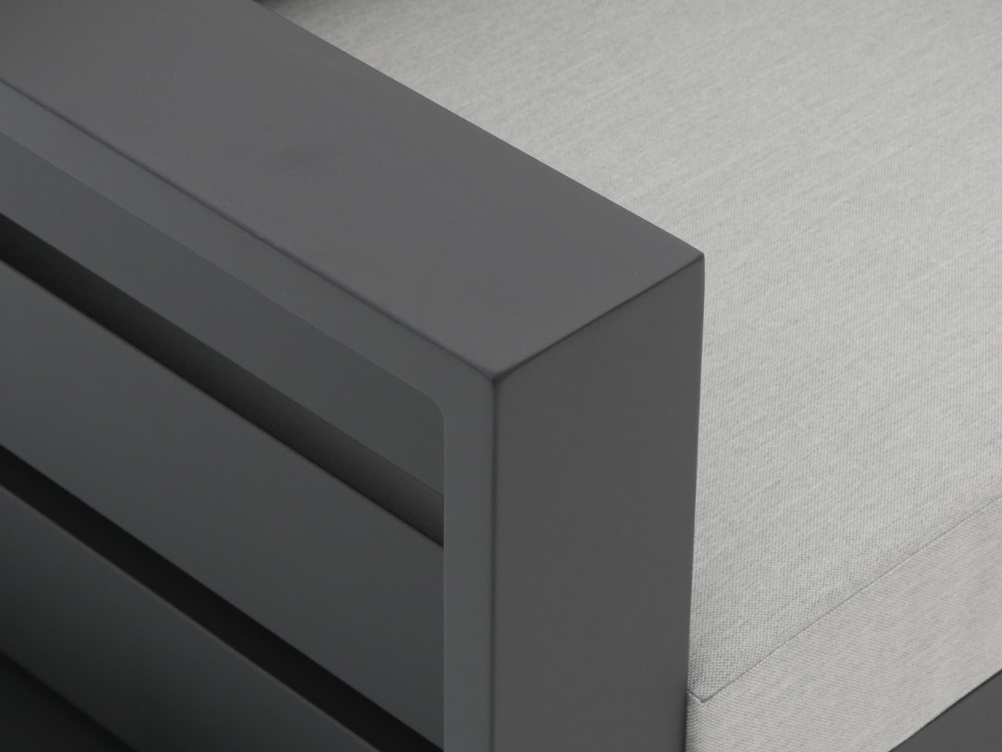 De ruime Avolo loungeset is gemaakt van gepoedercoat aluminium in de kleur charcoal. Aluminium is sterk, licht in gewicht en onderhoudsarm. Het is zeer geschikt voor gebruik buitenshuis. De poedercoating geeft de laklaag extra bescherming. Het beste is om de tuinmeubelen in de winter naar binnen te halen. Als dit niet mogelijk is, kunnen deze echter gerust onafgedekt buiten blijven staan.