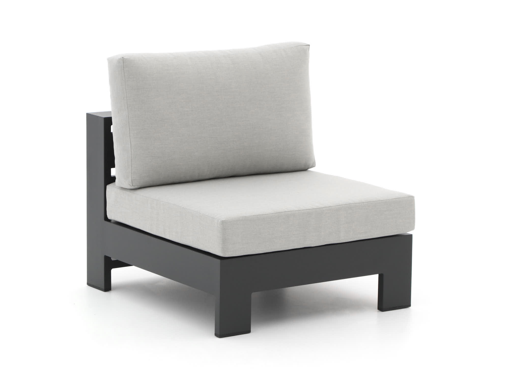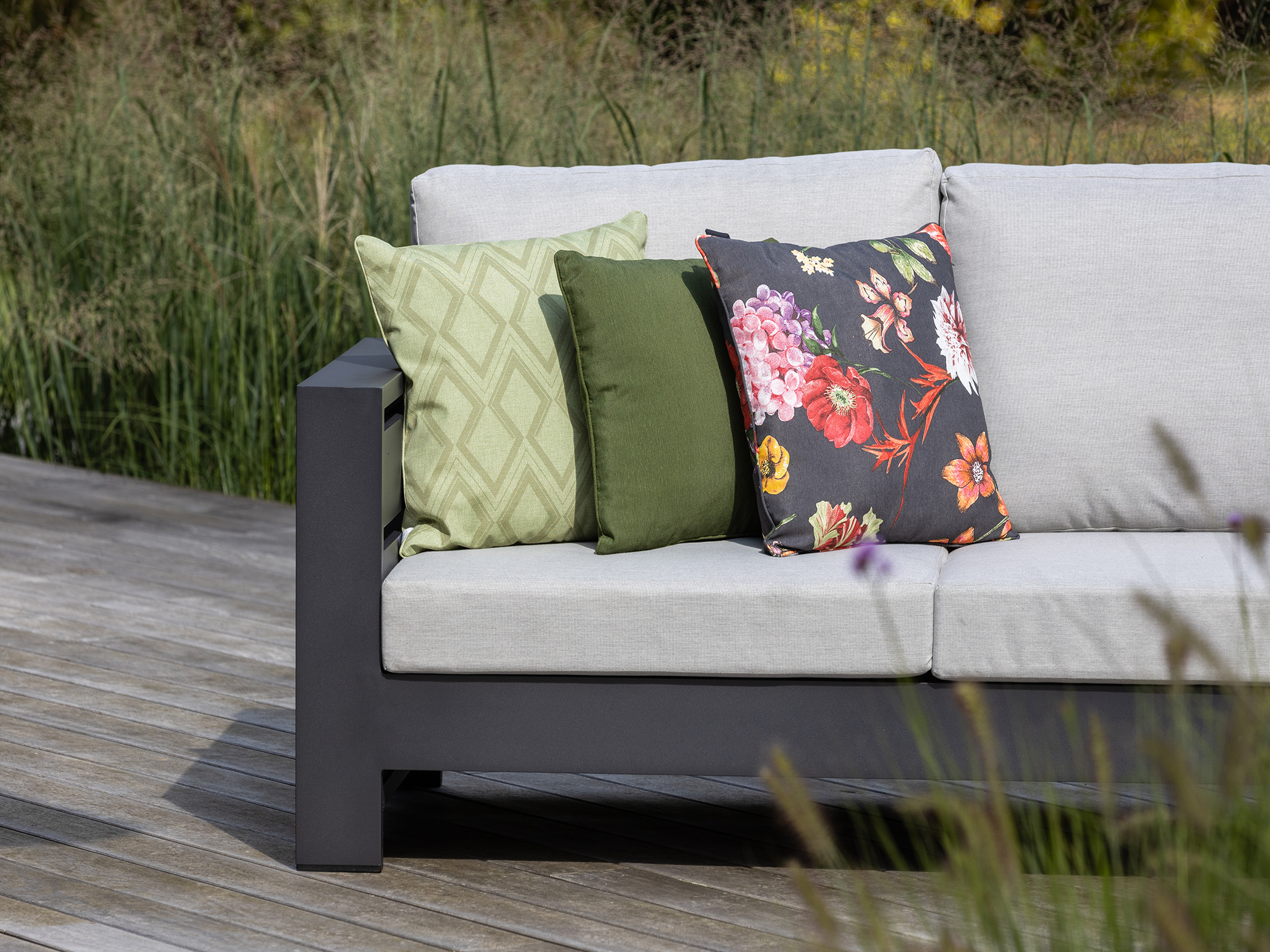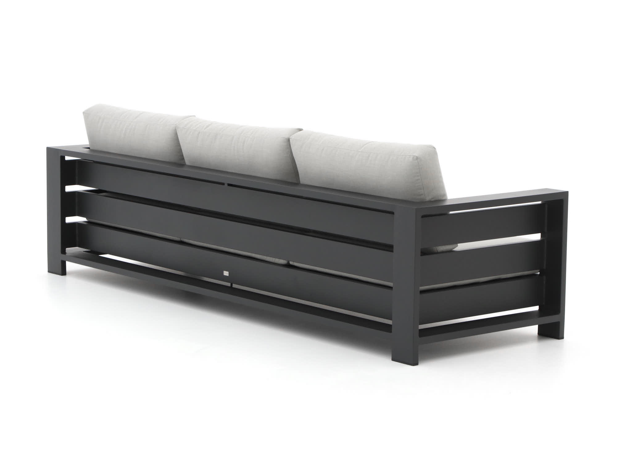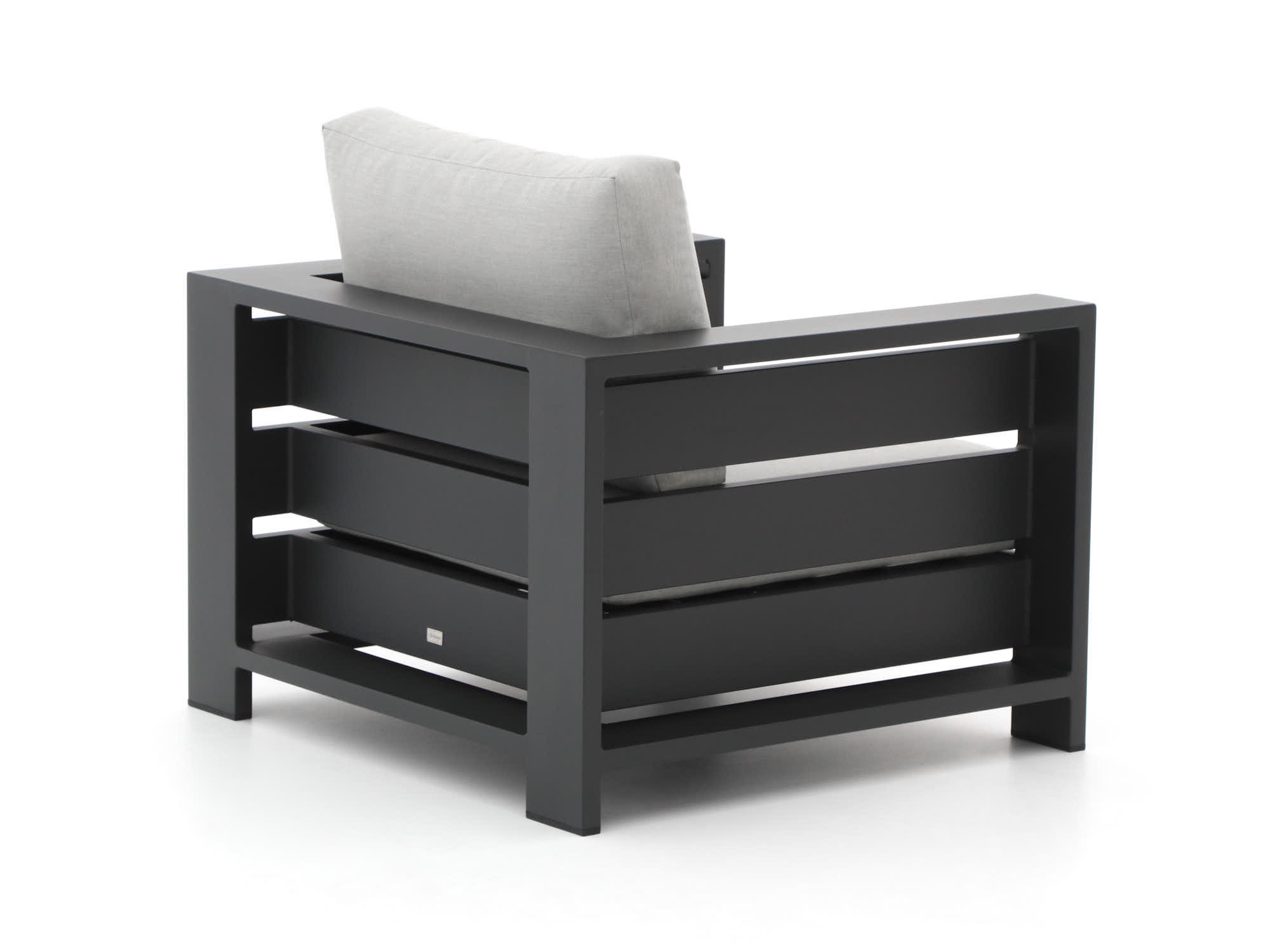 Stijlvolle kleur: De grijs-antraciet kleur van zowel de kussens als het meubel geeft je tuin een moderne en tijdloze uitstraling.