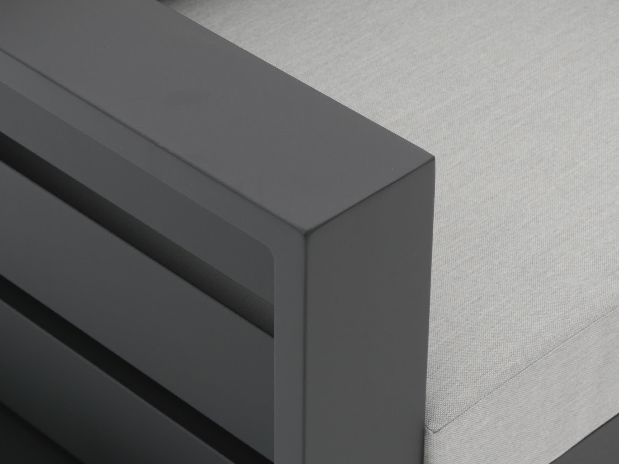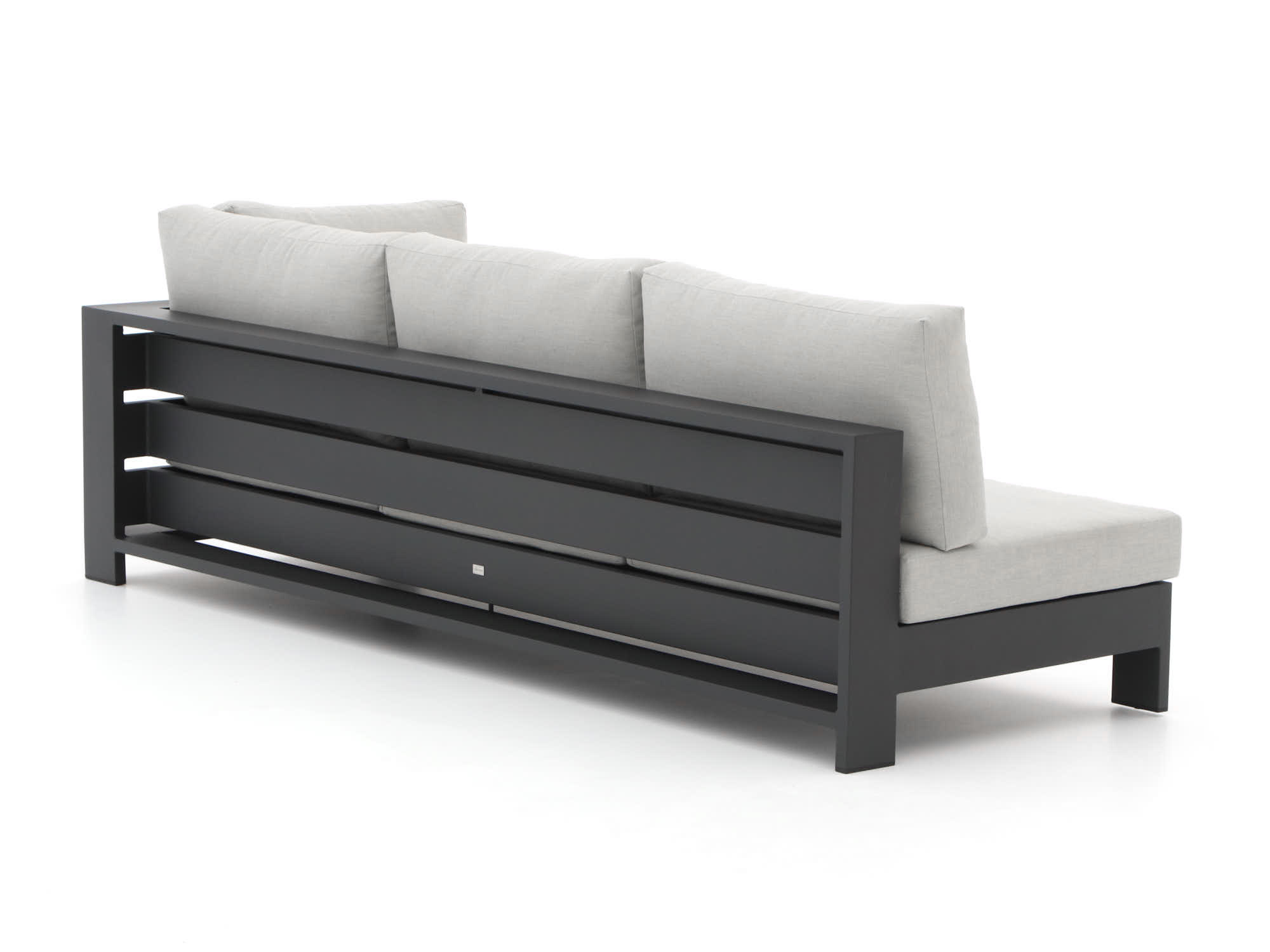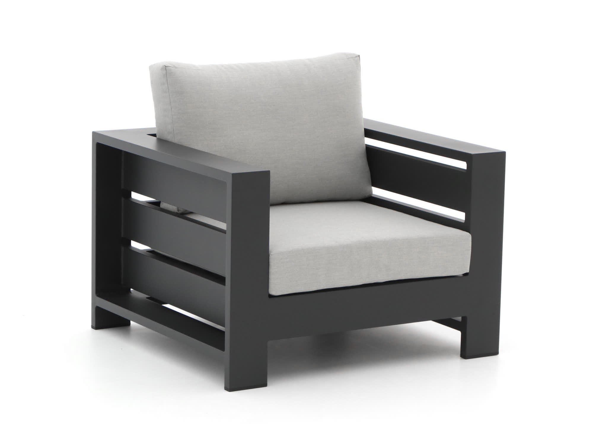 Stijlvolle kleur: De grijs-antraciet kleur van zowel de kussens als het meubel geeft je tuin een moderne en tijdloze uitstraling.