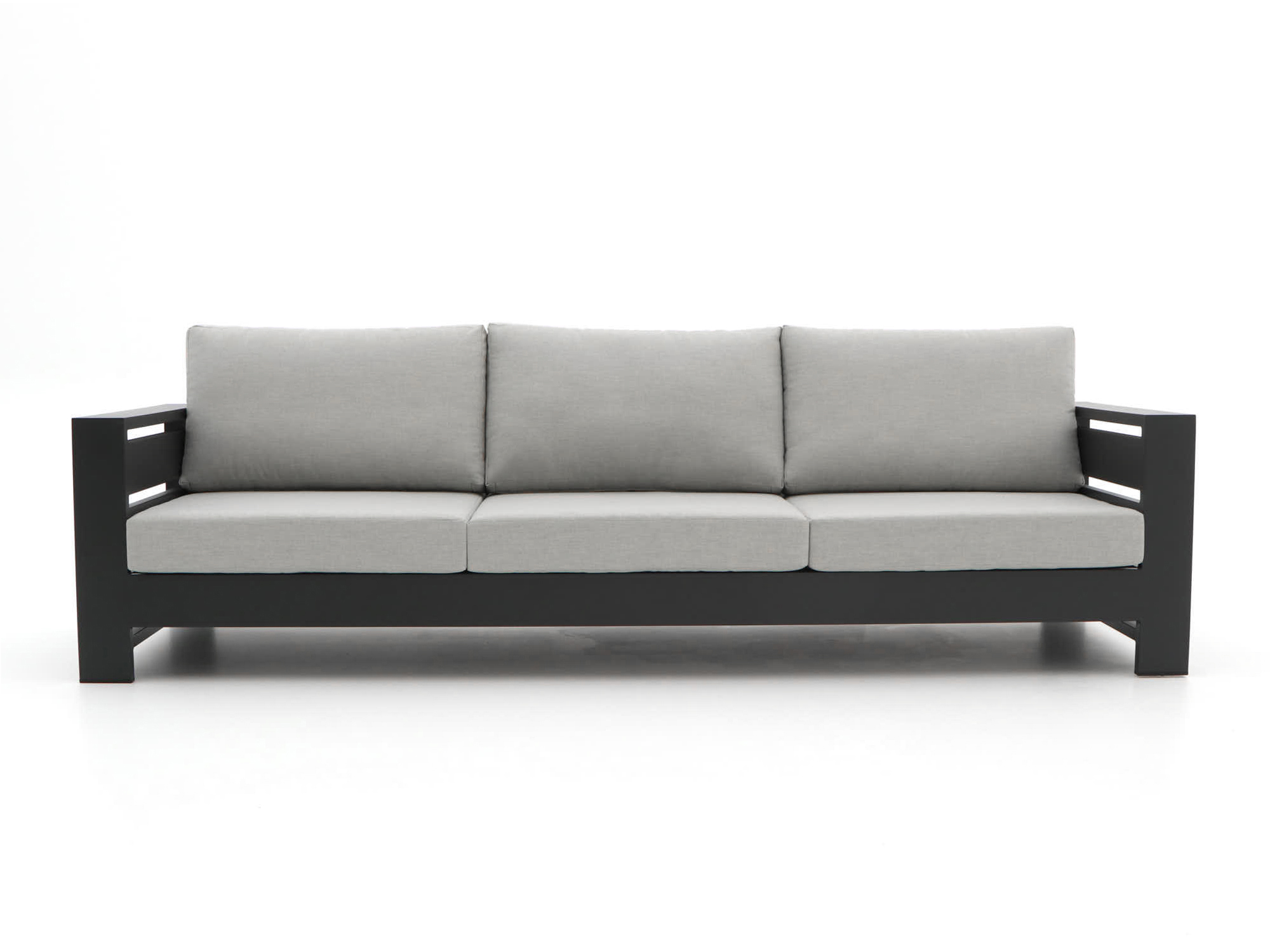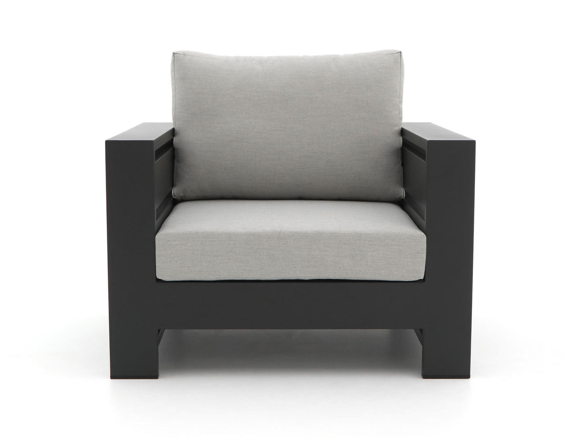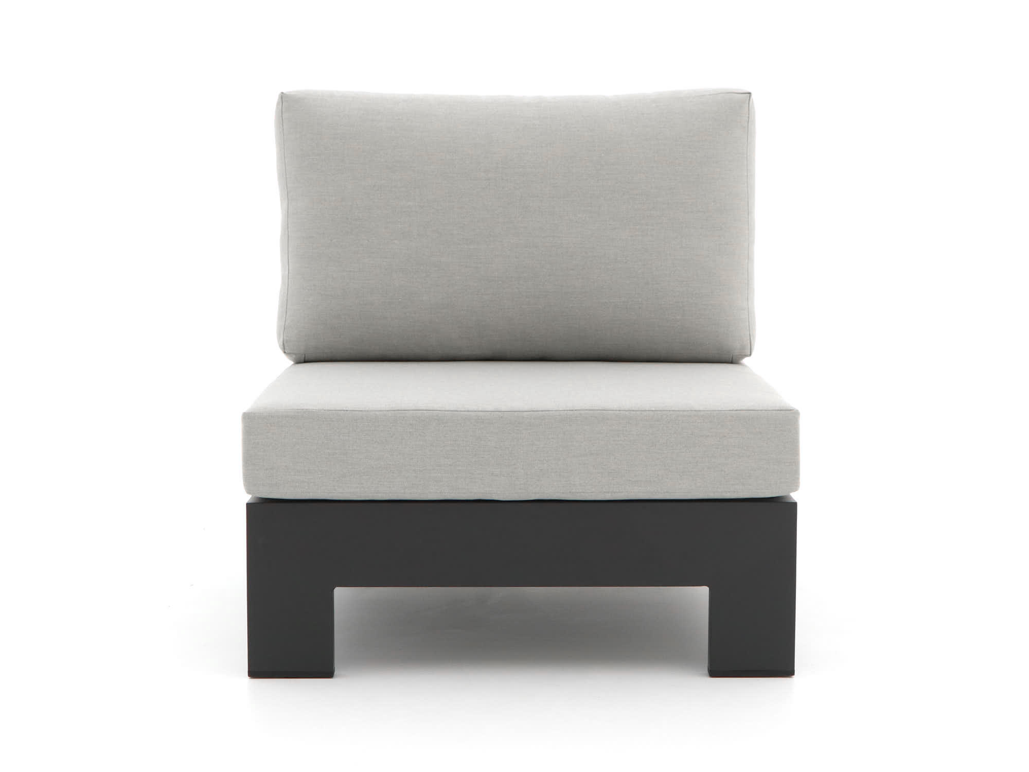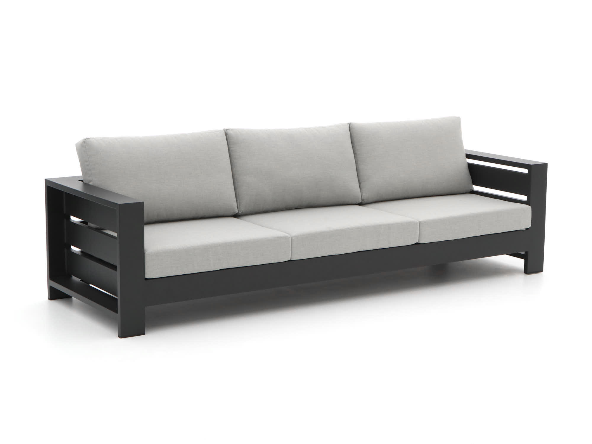 Stijlvolle kleur: De grijs-antraciet kleur van zowel de kussens als het meubel geeft je tuin een moderne en tijdloze uitstraling.