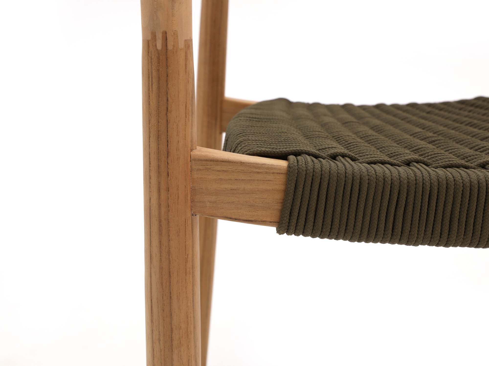 Rope zitting: De zitting van touw geeft een moderne twist en is ook nog eens comfortabel. Perfect voor lange zomeravonden aan tafel.
