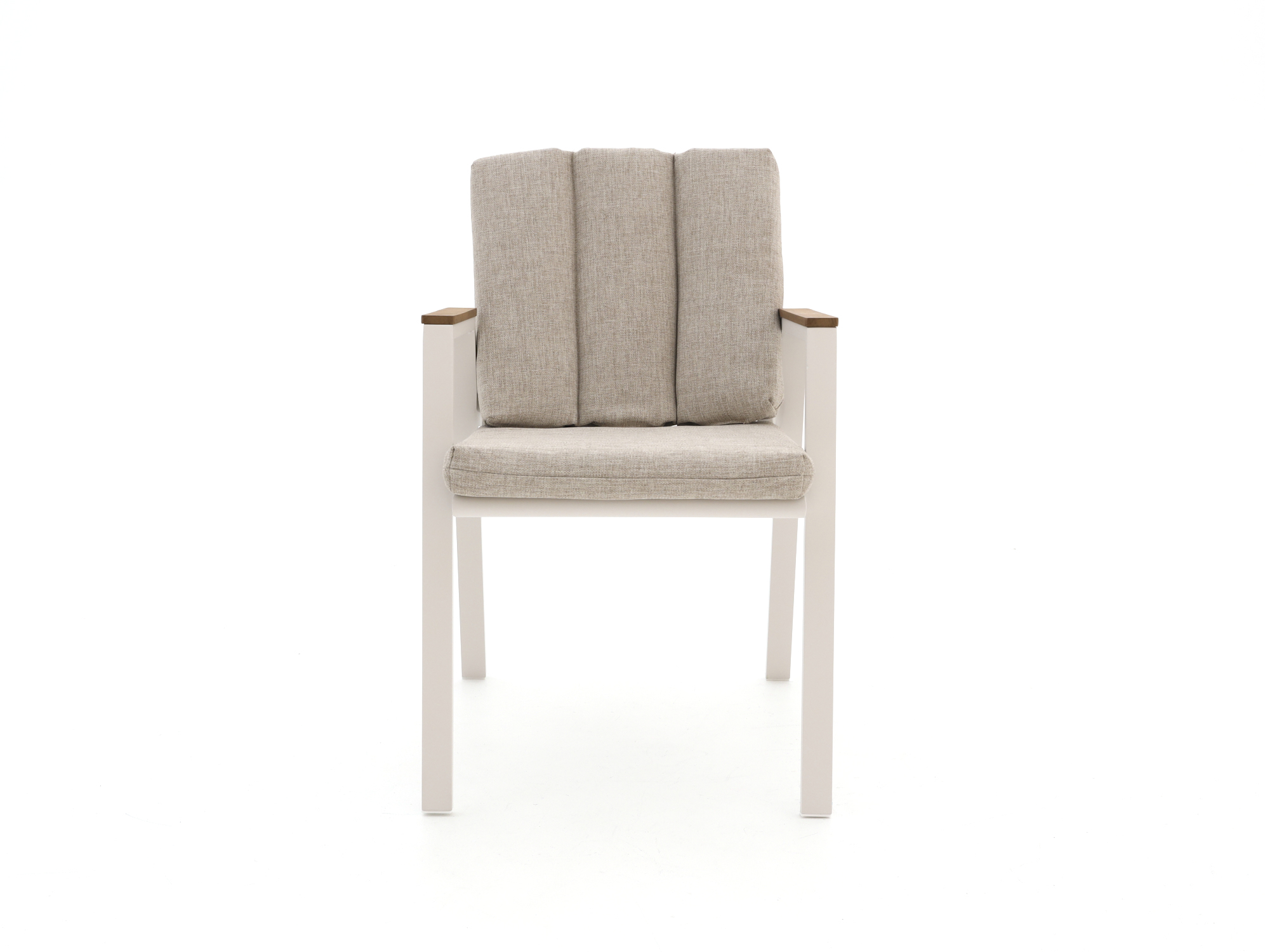 • Teakhouten armleuningen: Je armen rusten op warm aanvoelend hout in plaats van koud metaal, fijn als je lang blijft natafelen.