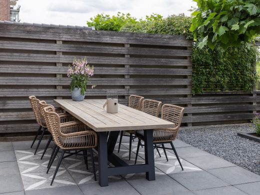 Deze tafel wordt grotendeels ongemonteerd geleverd om transportschade te voorkomen. Geen zorgen, de montage is eenvoudig. Meestal hoef je alleen de poten te bevestigen en een paar schroeven vast te draaien. Met de duidelijke handleiding staat je tafel binnen enkele minuten stevig en stabiel. Zo kun je direct genieten van gezellige momenten in de tuin!