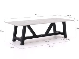 Afmetingen: Met een lengte van 260 cm en een breedte van 100 cm biedt deze tafel voldoende ruimte voor 8 stoelen, perfect voor grote gezelschappen.