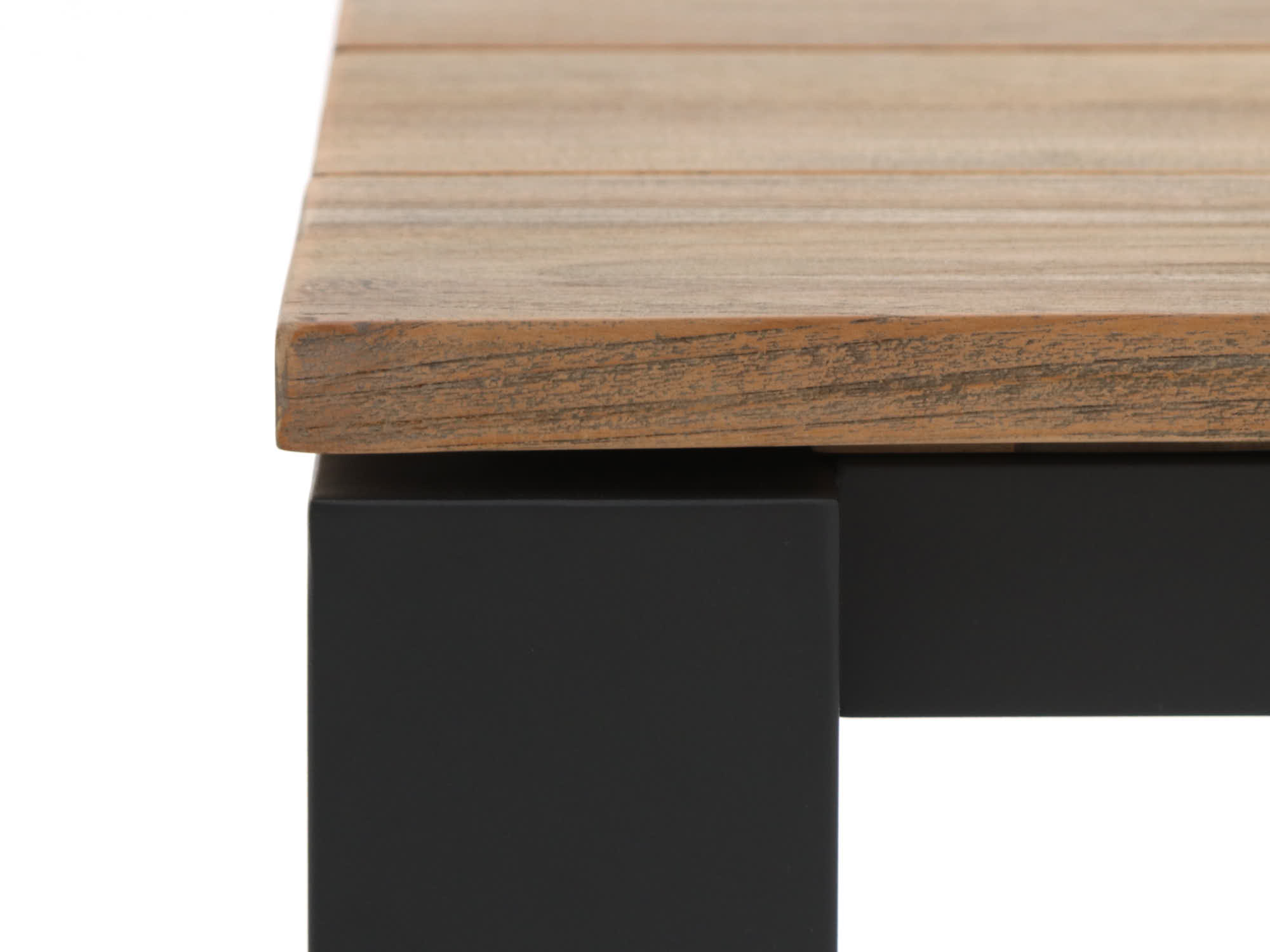 Teakhouten tafelblad: Geeft een warme uitstraling en is bestand tegen alle weersomstandigheden, voor jarenlang plezier.