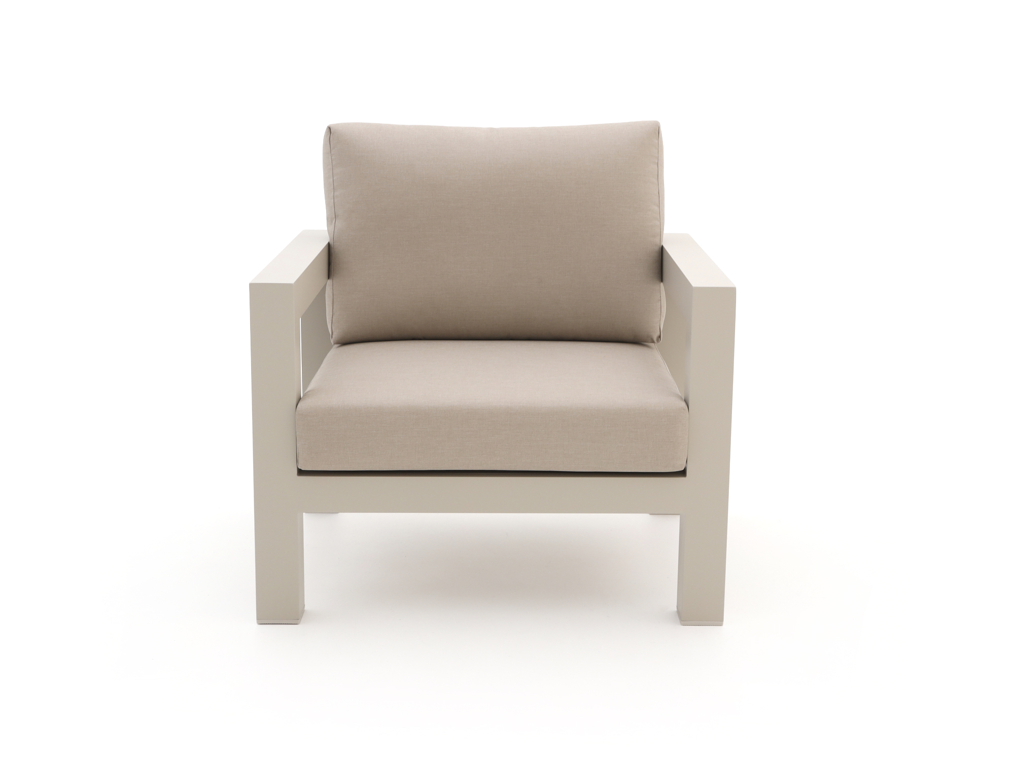 De Bellagio Campazzo hoek loungeset is een aluminium loungeset voor 6 personen, inclusief kussens, voor wie graag lang en ontspannen buiten zit. Door de hoekopstelling benut je de ruimte in je tuin of op je balkon efficiënt, je trekt hem als het ware in de hoek zodat je meer loopruimte overhoudt. Het aluminium frame is licht van gewicht, waardoor je de set makkelijker verschuift als je bijvoorbeeld wilt schoonmaken of even in de schaduw wilt zitten. De taupe zandkleurige kussens geven een rustige, warme sfeer en nodigen uit om lekker onderuit te zakken met een boek of een borrelplank. De hoezen zijn afritsbaar, dus als er wat wordt geknoeid, haal je ze er gewoon af om te reinigen, wel zo relaxed als er kinderen of visite rondlopen.