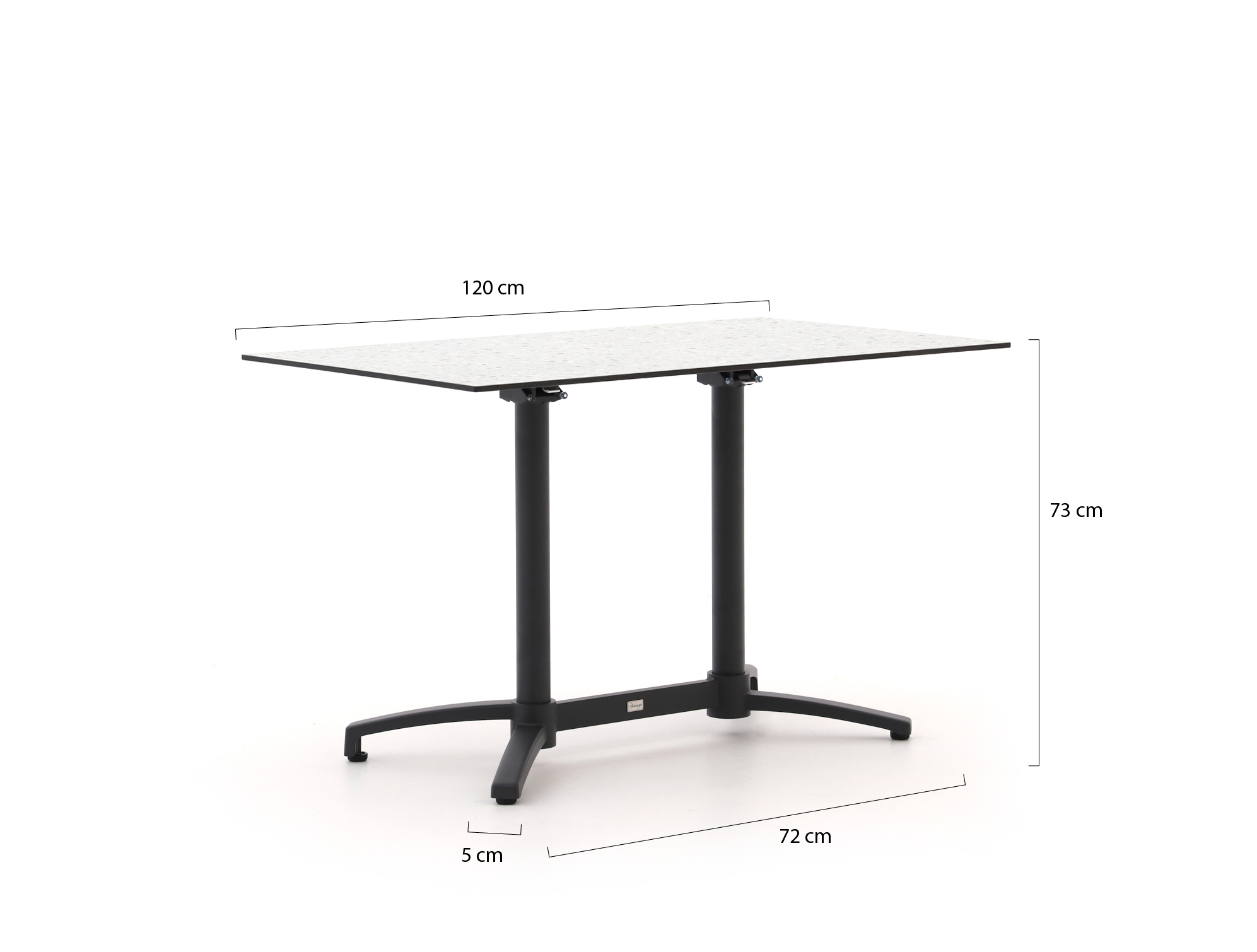 • Inklapbaar onderstel: Na het eten klap je de tafel zo in en zet je hem ruimtebesparend tegen de muur of in de schuur.