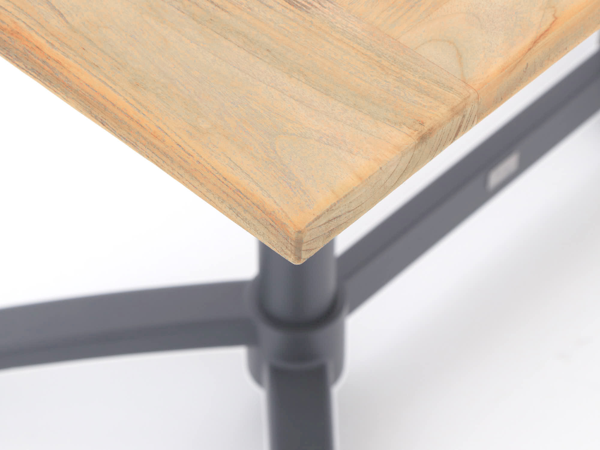 Teakhouten tafelblad: Het teakhouten blad is bestand tegen alle weersomstandigheden en biedt jarenlang plezier zonder splinters.