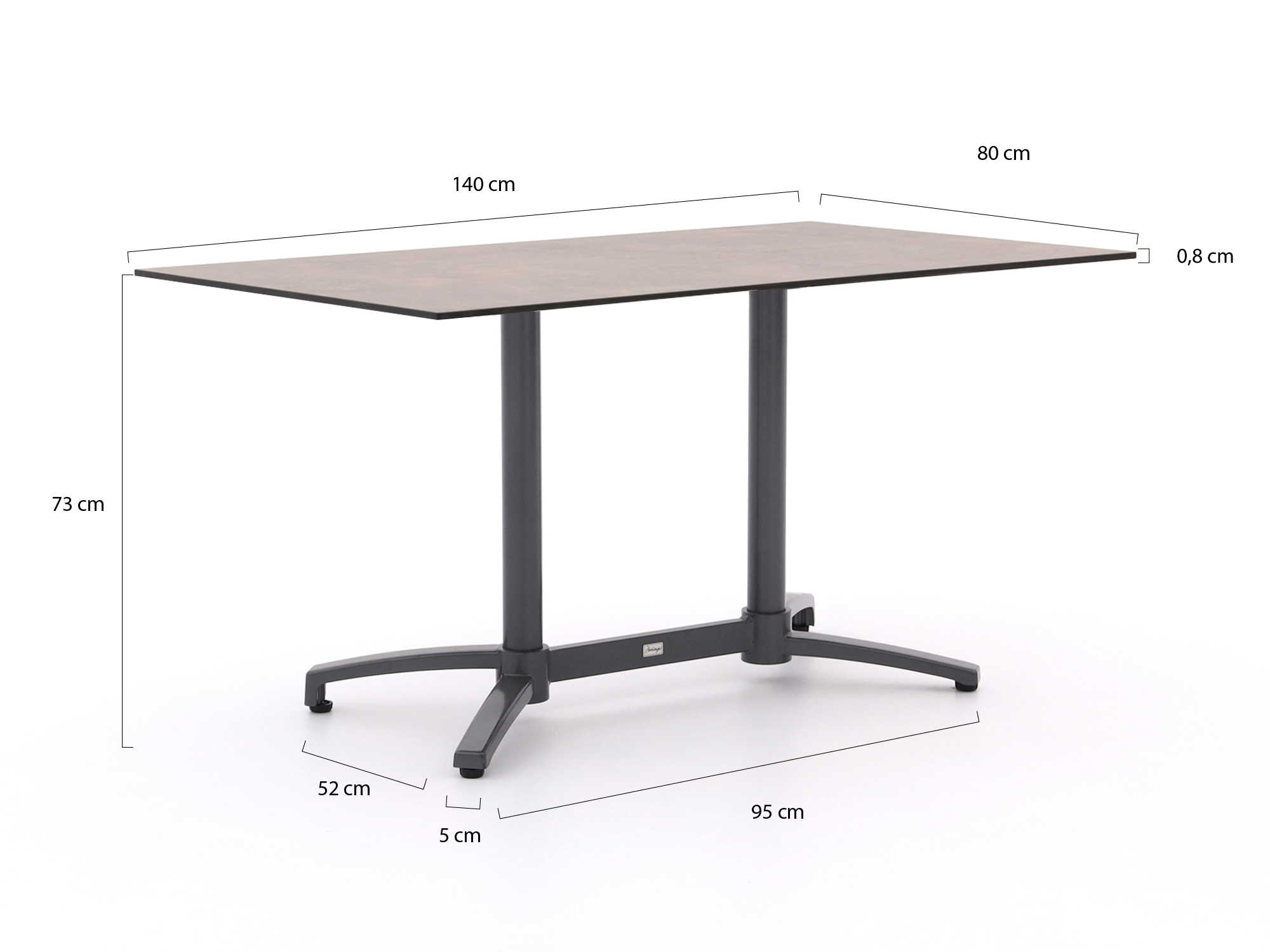 • Aluminium onderstel: De tafel is stevig maar licht, dus je tilt hem makkelijk even op als je je terras anders wilt indelen.