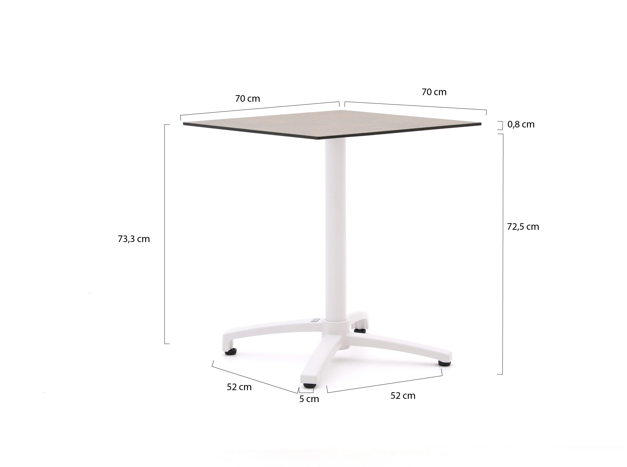 • Compact formaat 70x70 cm: Past makkelijk op een kleiner terras of balkon, maar biedt genoeg plek voor borden, glazen en een schaal hapjes.