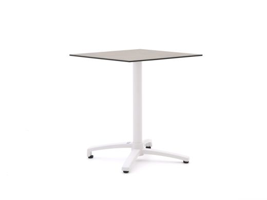 De Bellagio Canzo klaptafel 70x70x73cm is een compacte, vierkante tuintafel voor wie graag flexibel is met de ruimte op het terras of balkon. Met het handige klapmechanisme klap je het kunststof blad zo omhoog en zet je de tafel smal weg tegen een muur, ideaal als je niet altijd een tafel in de weg wilt hebben staan. Het blad is van HPL in een bruine wolkkleur en het onderstel is van licht aluminium in wit, dat samen zorgt voor een rustige, neutrale look die makkelijk combineert met je stoelen. Met 70x70 cm heb je genoeg plek om met 2 personen lekker te eten, of met 3 tot 4 personen te borrelen zonder dat de tafel veel ruimte inneemt. Door de hoogte van 73 cm zit je op gewone tuinstoelen gewoon prettig aan tafel, zonder gekke zithouding.