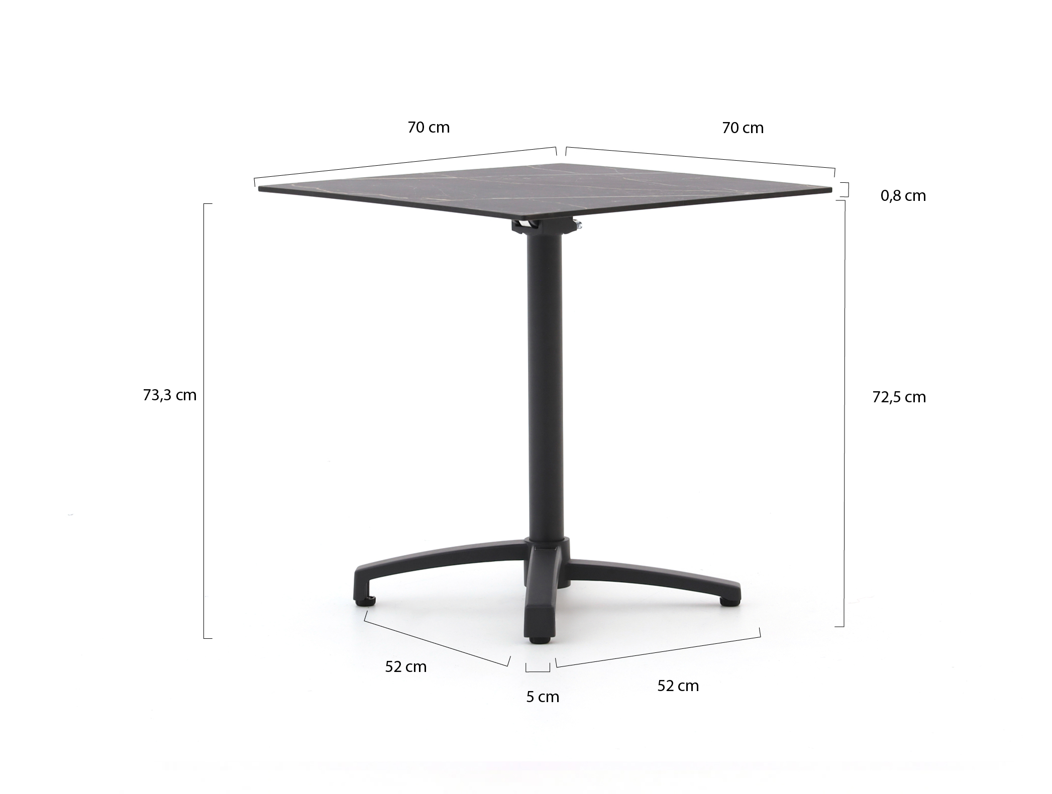 • Compact formaat 70x70 cm: Past goed op een balkon of klein terras, maar biedt toch plek voor borden, glazen en een schaaltje salade.
