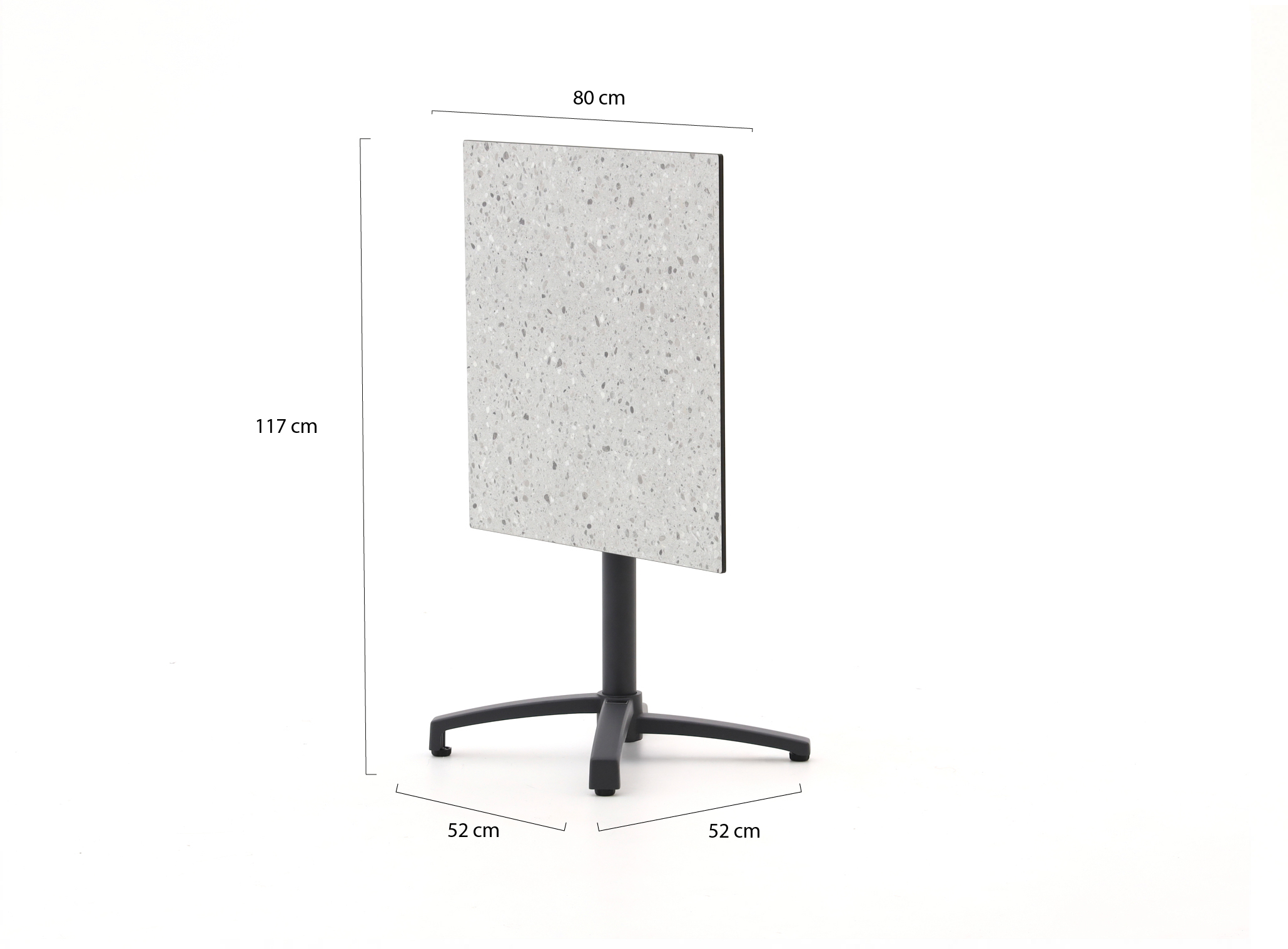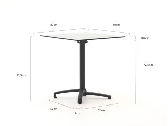 • Compact formaat 80x80 cm: Er passen 2 tot 4 stoelen omheen zonder dat je hele balkon of terras vol staat.