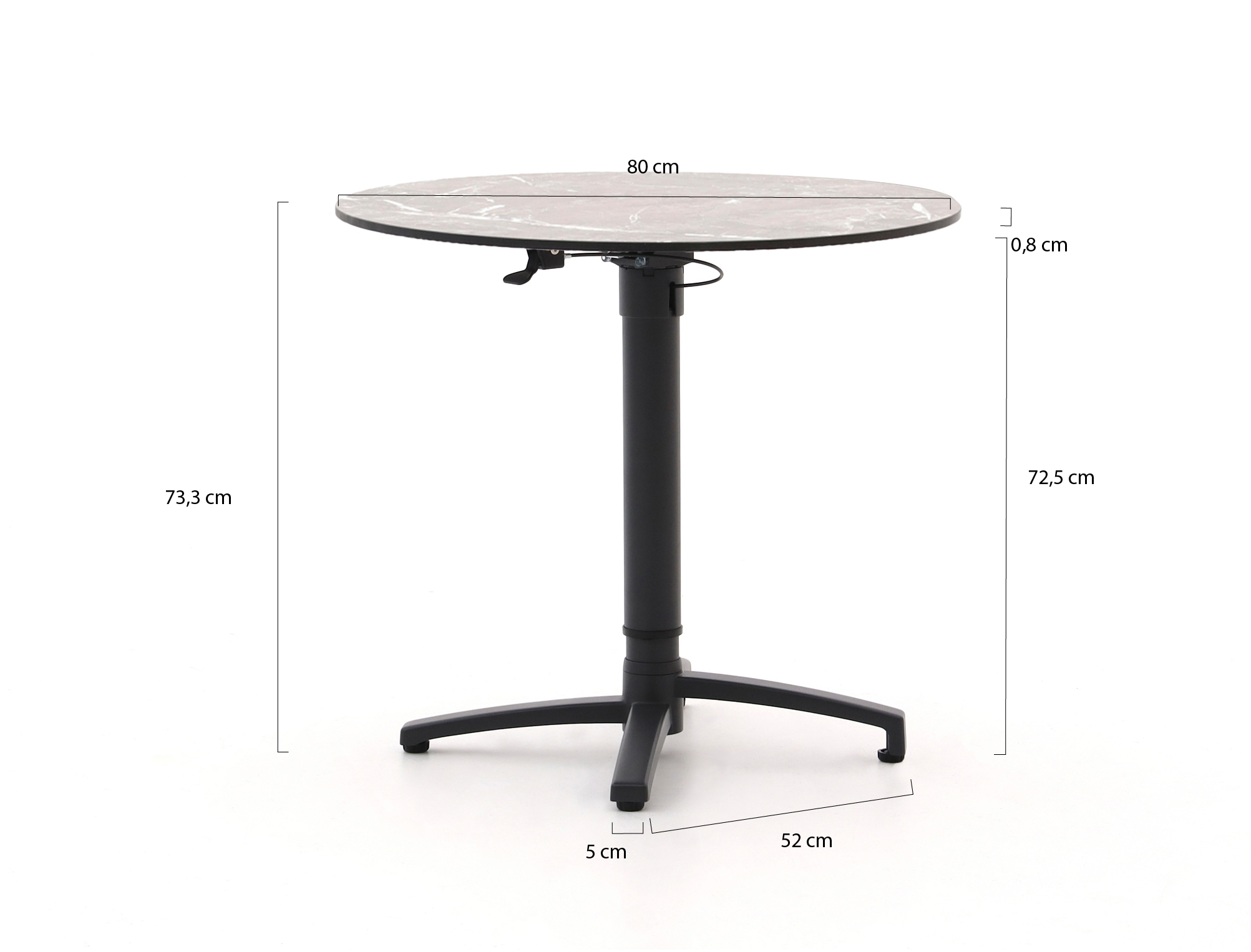 Bellagio Canzo klaptafel ø80 (h:73/109cm) verstelbaar