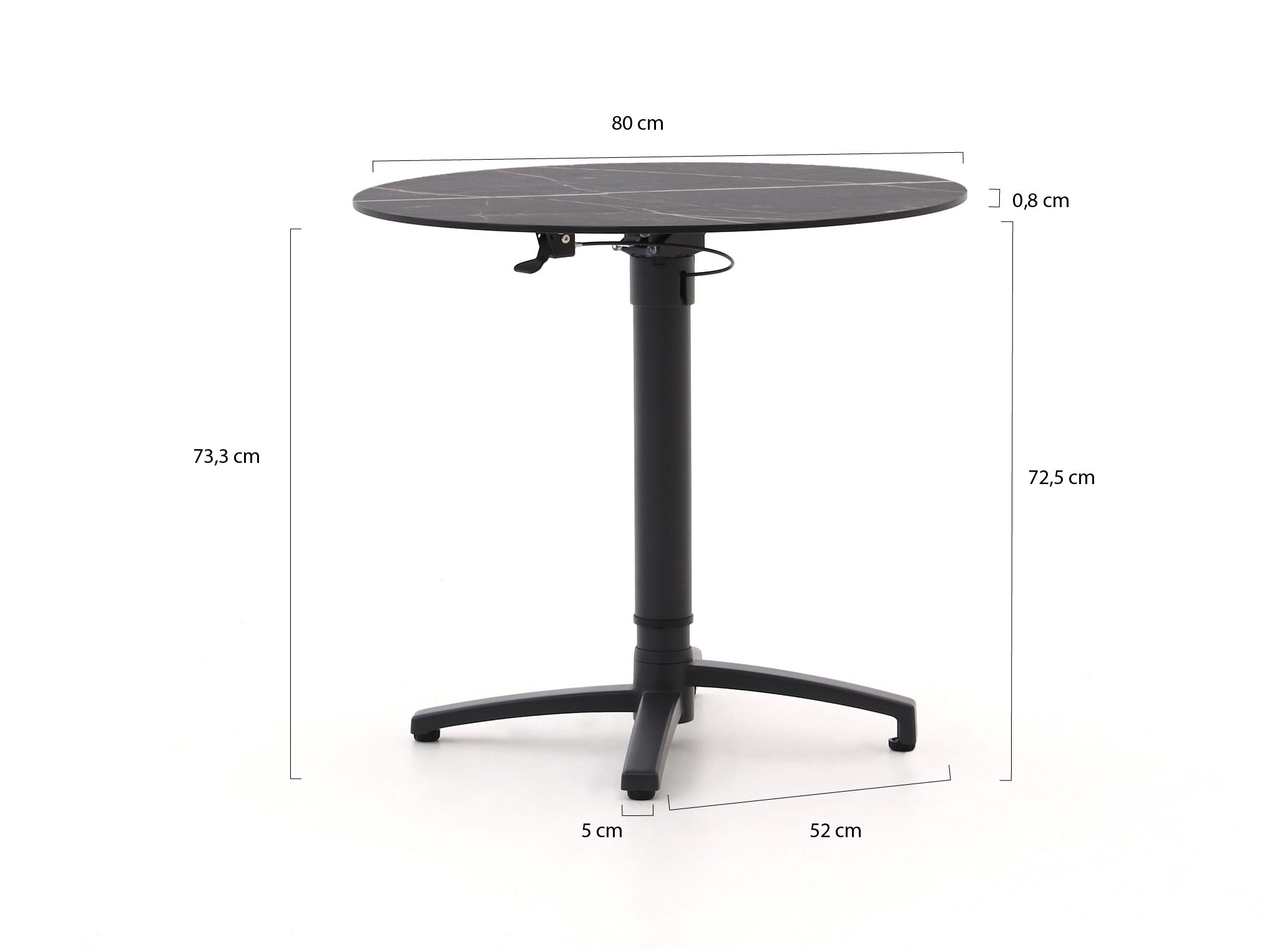 Bellagio Canzo klaptafel ø80 (h:73/109cm) verstelbaar