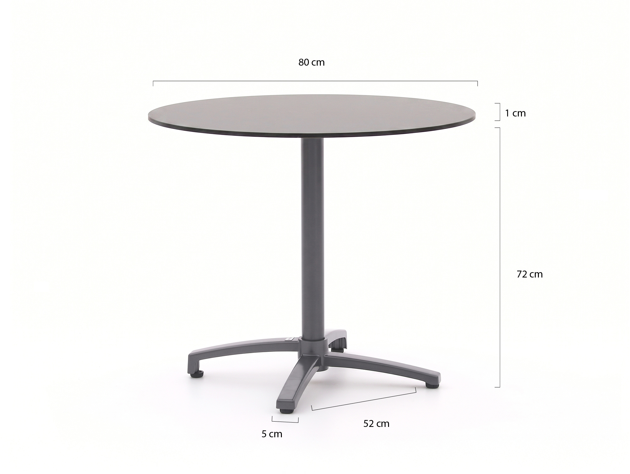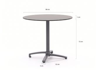• Rond tafelblad van 80 cm: Ruim genoeg voor 2 tot 3 personen om lekker te eten of koffie te drinken.