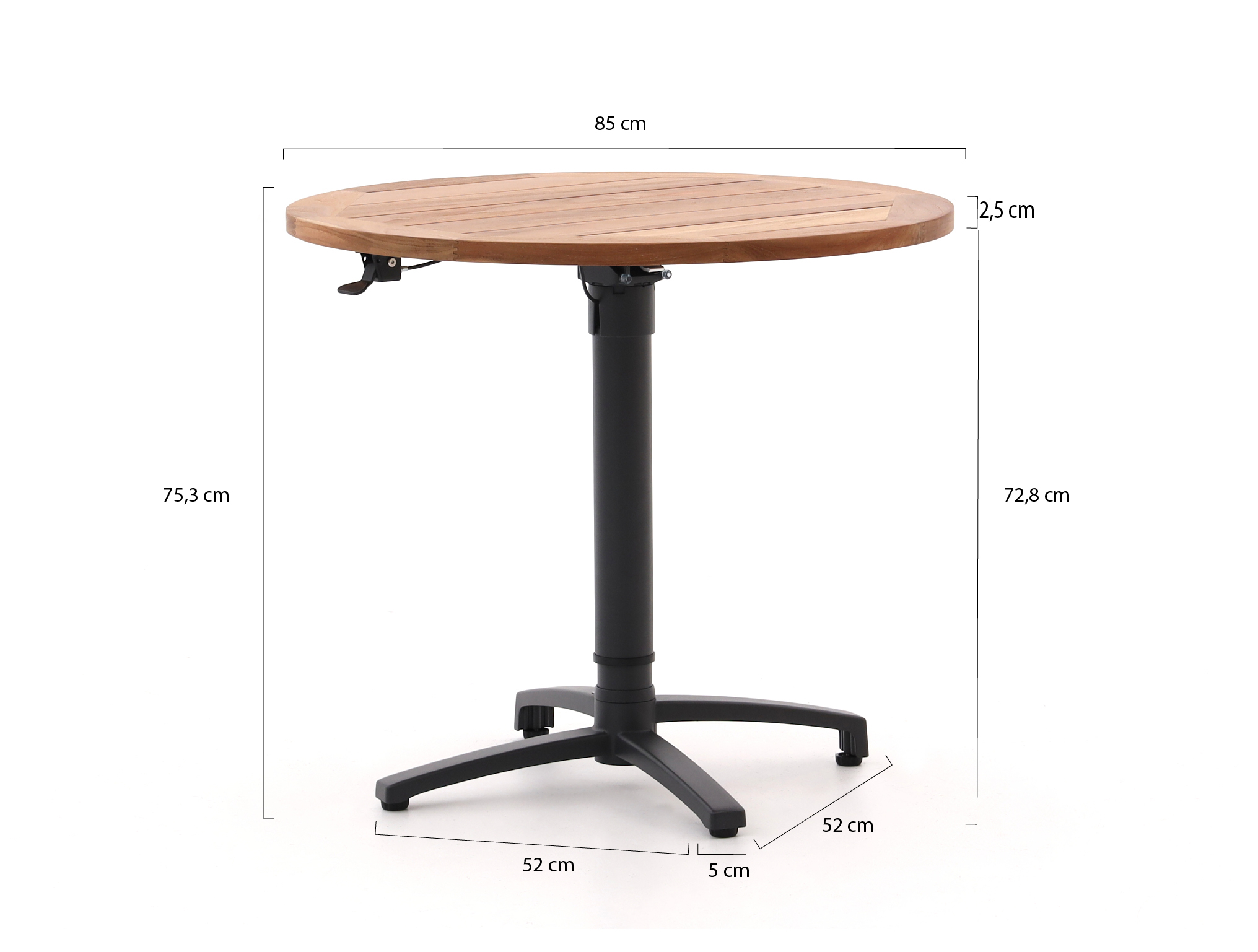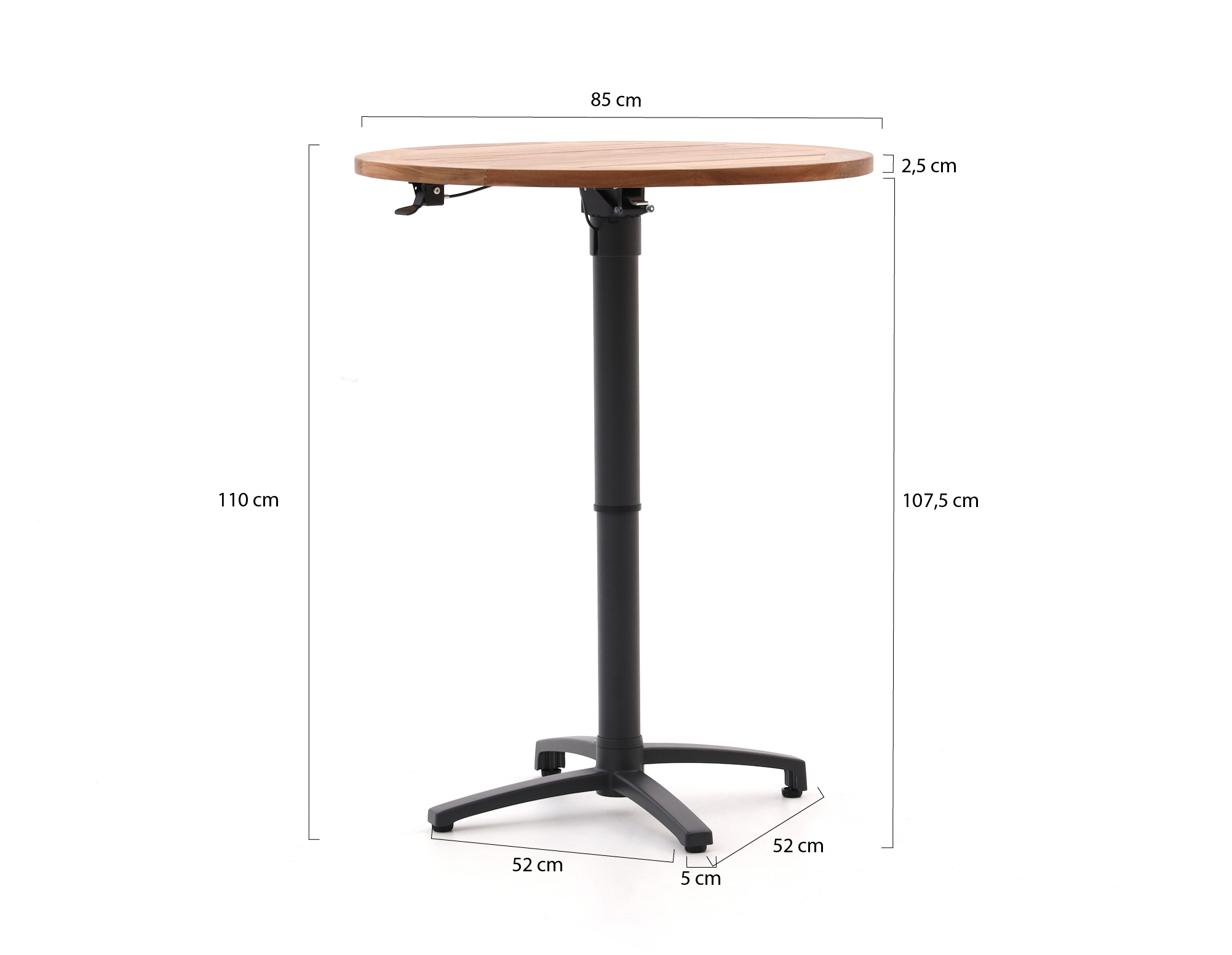 Bellagio Canzo klaptafel Ø85 (h:73/109cm) verstelbaar