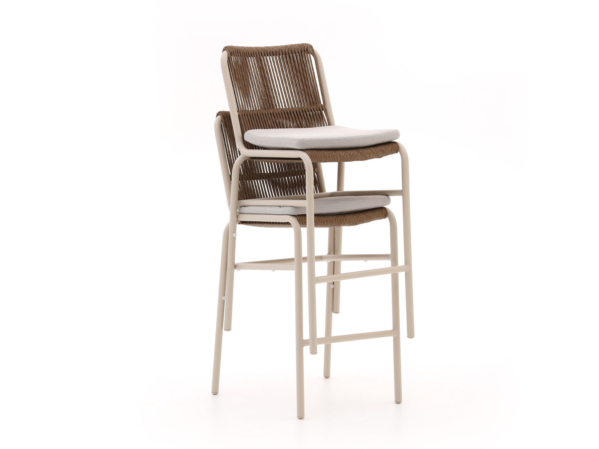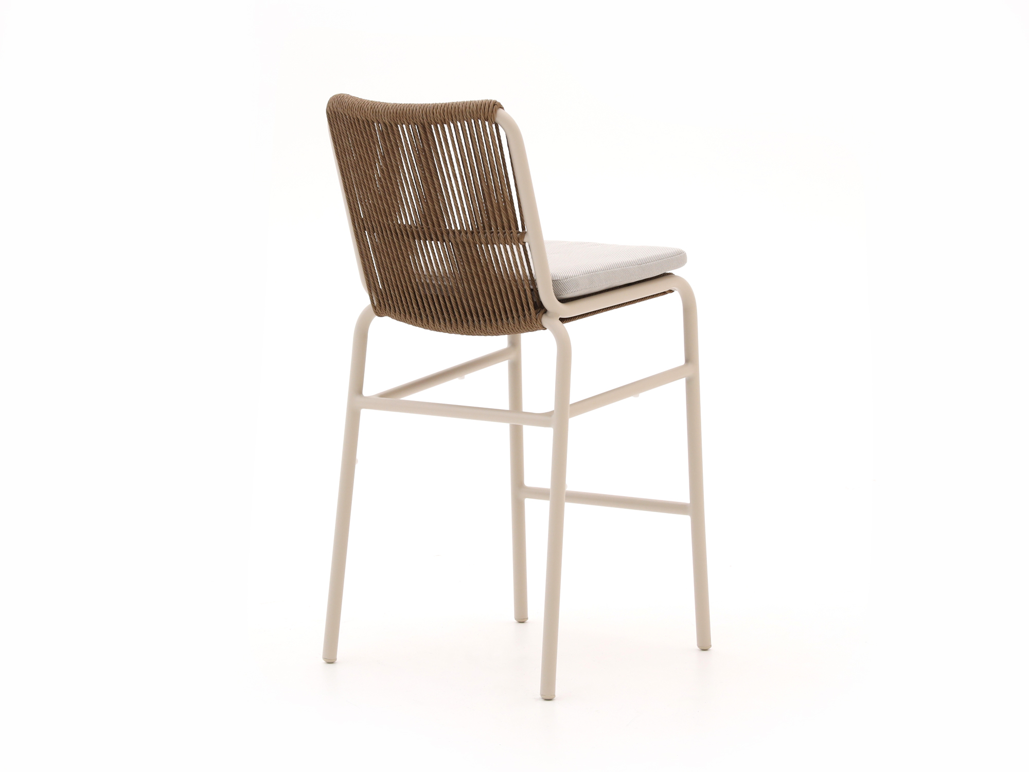 De Bellagio Caronia/Tritoni barset is een ronde barset voor 4 personen, ideaal als je graag wat hoger zit tijdens een borrel of snelle maaltijd. Door het lichte aluminium frame en de stapelbare barkrukken is deze set praktisch als je niet al te veel ruimte hebt op je terras, maar wel gezellig met elkaar aan één ronde tafel wilt zitten. De combinatie van aluminium met beige wicker zorgt voor een stevige, maar toch lichte set die je makkelijk verplaatst als je bijvoorbeeld de zon of schaduw opzoekt. Inclusief kussens, zodat je ook langere tijd comfortabel kunt blijven zitten zonder houten kont. Zo heb je een fijne mix van actief zitten en relaxed borrelen.
