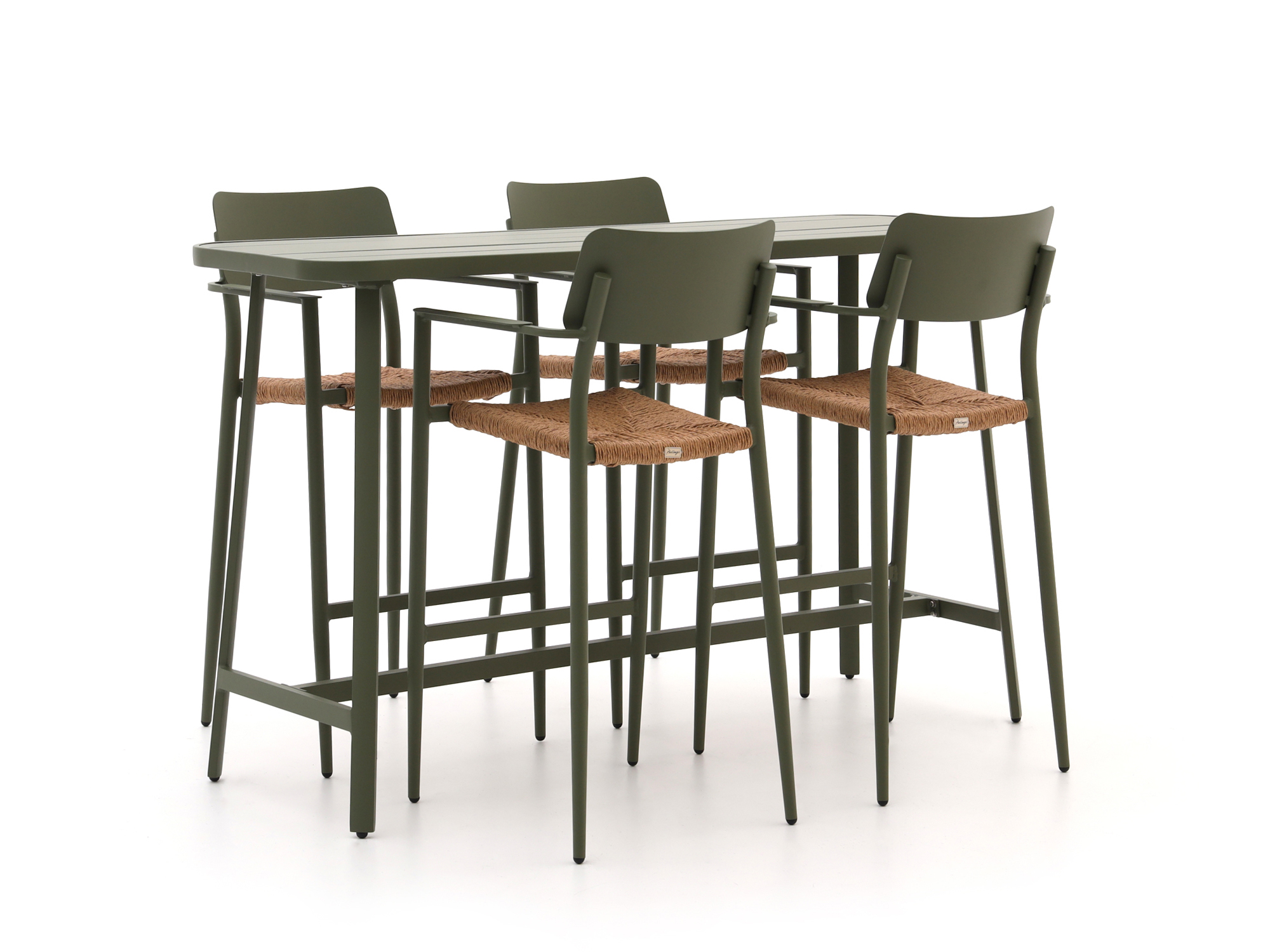 Ontdek de stijlvolle Bellagio Cino barset in de frisse kleur Moss Green! Deze 5-delige set is perfect voor gezellige borrels in je tuin. Dankzij het aluminium frame is de set licht van gewicht en onderhoudsarm, ideaal voor buitengebruik. De wicker zittingen zijn niet alleen vochtbestendig, maar ook handgevlochten, wat elke stoel uniek maakt. En als je klaar bent met genieten, schuif je de krukken eenvoudig onder de tafel om ruimte te besparen. Een praktische en stijlvolle keuze voor elke tuinliefhebber!
