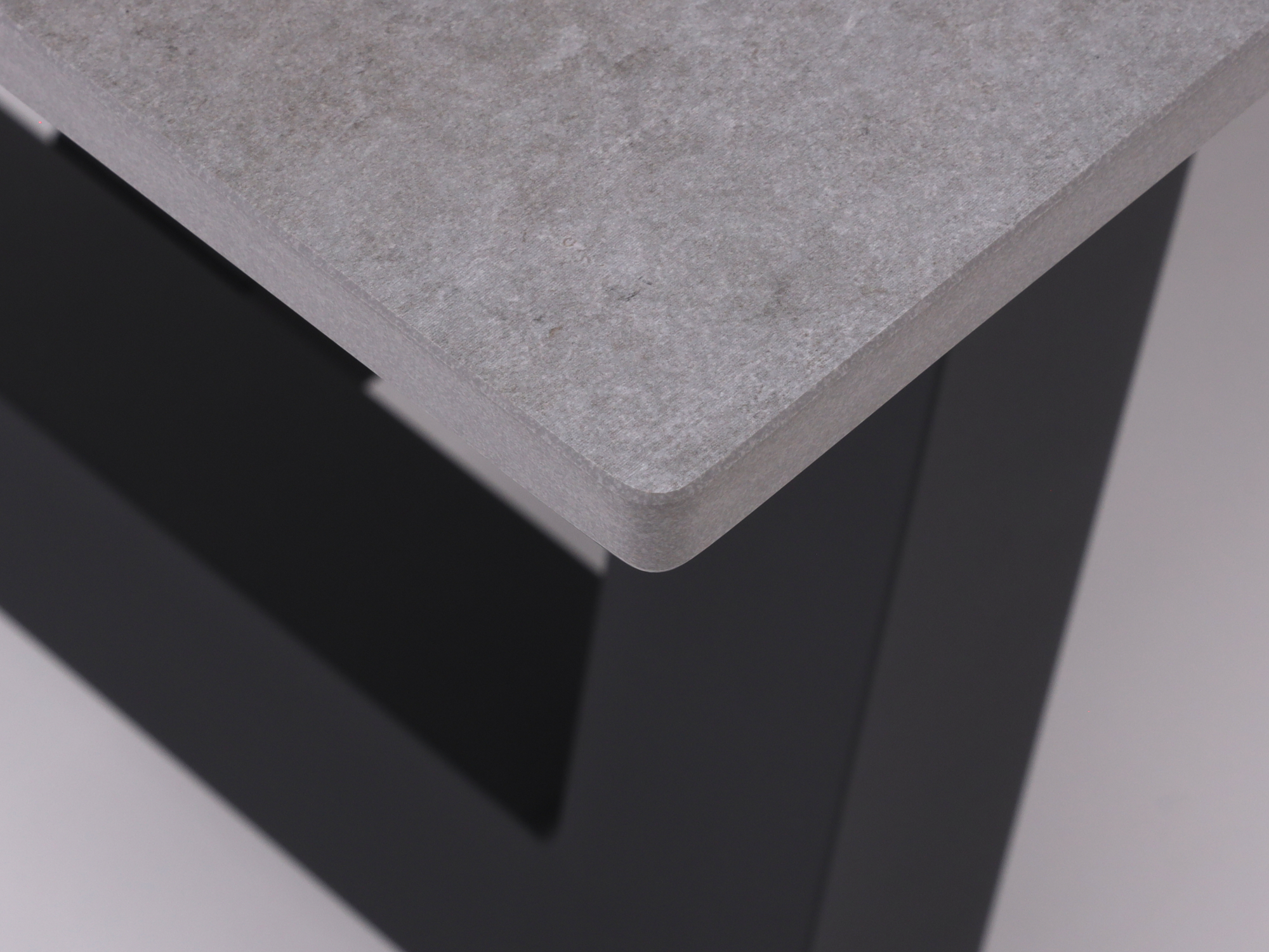 De Bellagio Bresimo dining tuintafel is uitgevoerd met een prachtige donkere poot van aluminium. Aluminium is een sterk materiaal dat licht is in gewicht. Het is gepoedercoat. Daarom heeft de kleurlaag op het meubel een extra bescherming. Ook is aluminium onderhoudsarm. Het blad van deze unieke tafel is gemaakt van Dekton. Dekton is een veelzijdig materiaal wat, behalve een eigentijdse uitstraling, ook fantastische eigenschappen heeft. Zo is het onder andere zeer krasbestendig, vuurvast en vlekt het niet. Ook heeft het een hoge UV-bestendigheid. Grondstoffen die voor dekton gebruikt worden, zien we ook in de productie van porselein en quartz. Het blad is ultracompact. Daarbij is het ook bestand tegen vorst en dooien. Met al deze kenmerken hét perfecte tafelblad voor buiten.